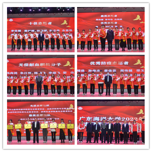 籍此机会,2022年12月7日下午,“广东海洋大学2022年志愿服务表彰大会”,在礼堂内举行。学校党委副书记林晓敏、学生工作部(处)、保卫处、后勤集团领导、市中心血站领导、各学院团委书记和志愿者代表约500多人参加会议,大会由校团委书记郑一鸣主持。