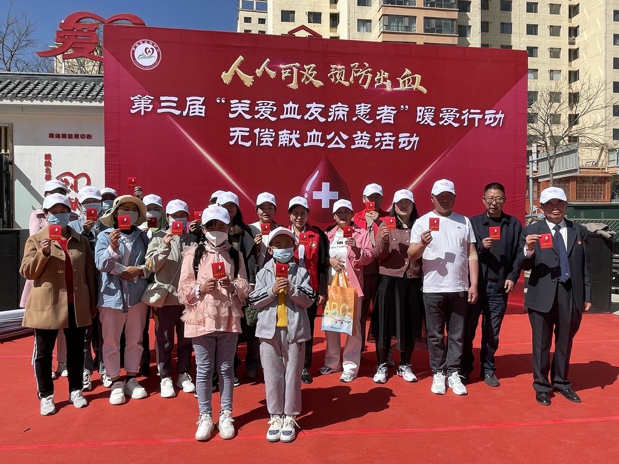 随后,青海血友之家罕见病关爱中心党支部书记范增先向参加活动的志愿者们发出倡议:“我们是高原大地上的一群血友病患者及家属。因为我们体内天生缺少一种凝血因子,因而常年需要补充一种从人血里提炼出的因子来维持生存。多年来,我们是无偿献血的受益者。如今,我们在医保政策、社会关爱等方面的支持下,我们的生存环境得到极大的改善。现在,我们越来越多的病友能够走出家门,融入社会,减轻了家庭和社会的负担……为了表达对祖国的热爱,对社会的恩情,我们血友病患者亲友们用热血、用行动回馈社会,并激发更多人加入无偿献血的队伍!让爱凝聚,汇成江海!”