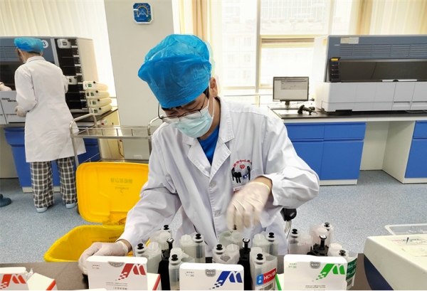 至此,尽管已经过多道关卡检验,但距离“旅程终点”仍有一段距离。检验科是对血液安全进行优胜劣汰的“主战场”,只有各项指标均合格的血液才能最终用于临床。采血时需同时留存两个5毫升试管的血液标本,标本会被送往检验科,按国家血液检测标准进行检测。目前,潍坊市血液标本检验全部实现自动化。