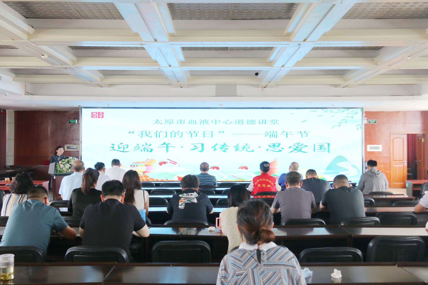 6月19日下午,太原市血液中心组织开展“迎端午·习传统·思爱国”主题道德讲堂。本期道德讲堂围绕“唱歌曲、学模范、讲故事、诵经典、谈感想、送吉祥”六个环节开展,品悟端午内涵,厚植家国情怀。行政后勤第三党支部党员李菲菲主持。