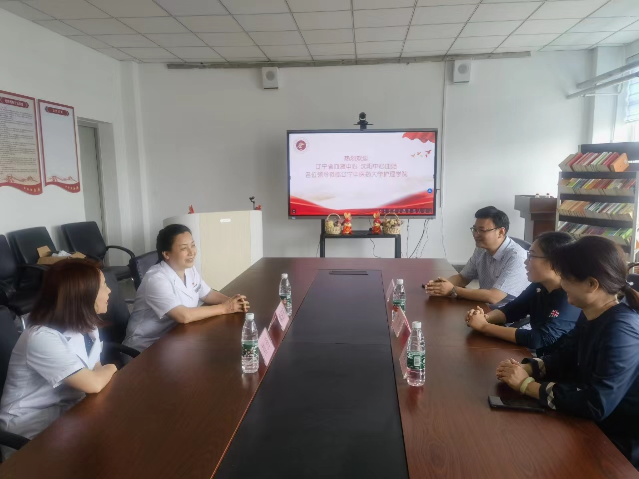 在第20届世界无偿献血者日庆祝的氛围方兴未艾之时,沈阳中心血站党委副书记兼副站长魏迎东携招募服务科主任刘丹等一行人来到辽宁中医药大学护理学院,与学院院长常亮、党总支书记范艳、副书记葛骁欧就如何推进高校无偿献血工作等事宜展开了座谈。