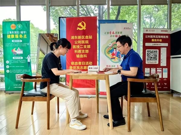 为鼓励更多爱心人士参与无偿献血,宣传和促进血液安全,感谢无偿献血者的无私奉献行为,6月14日下午,浦东新区公利医院(输血科及医技二支部)联合浦东新区血站在世博滨江(11号望江驿)健康服务点开展主题为“我为群众办实事”的无偿献血及自身献血的咨询和宣传活动。