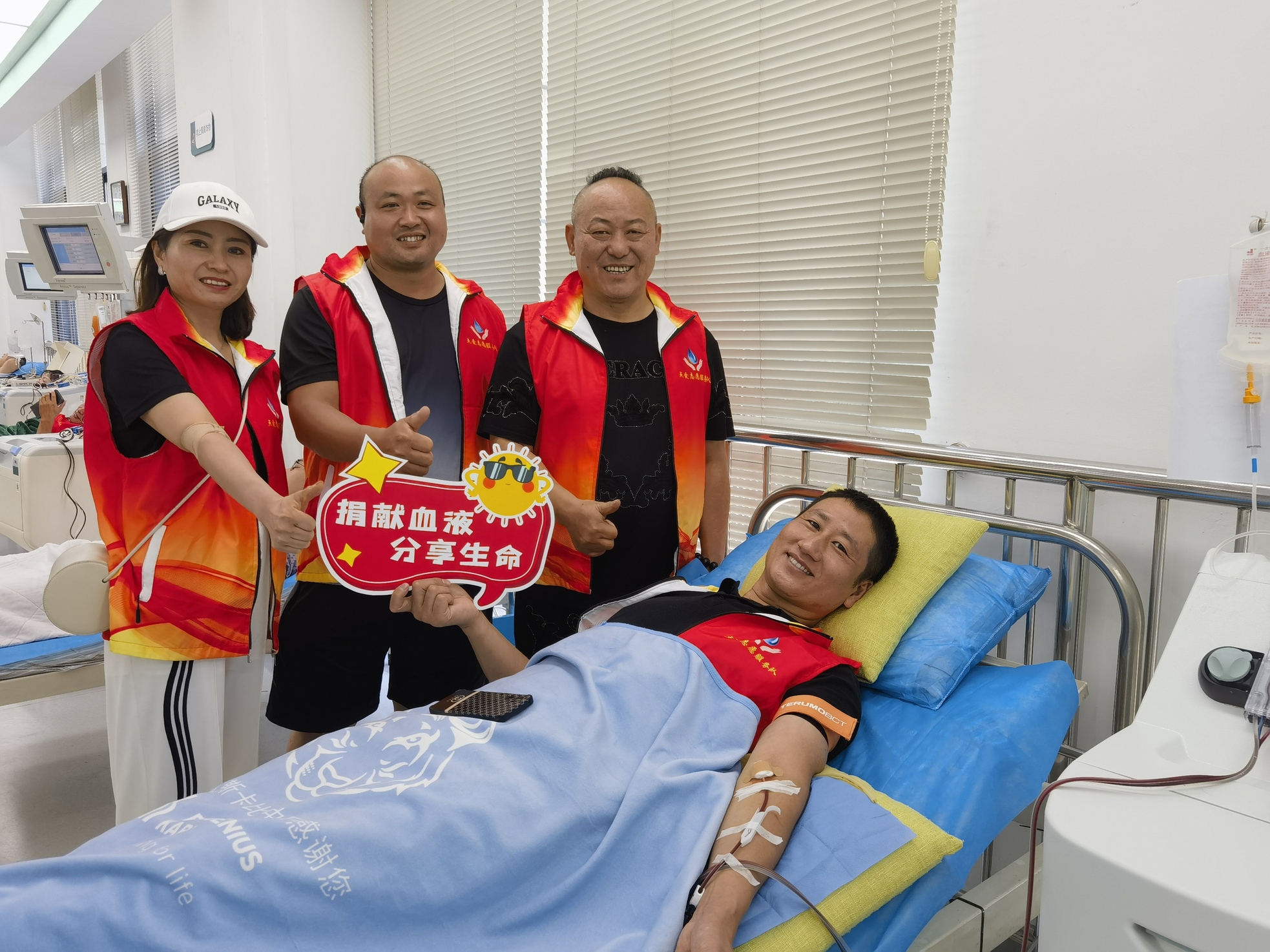 上午九点,爱心车队陆续抵达血液中心,在献血大厅里,王辉向大家介绍了全血和成分血的区别,引导大家依次信息登记、体检初筛。化验结果出来后,初筛结果中今天不适宜献血的同志则在大厅做起志愿服务,为参与献血的队友冲泡葡萄糖水、拍照留念。