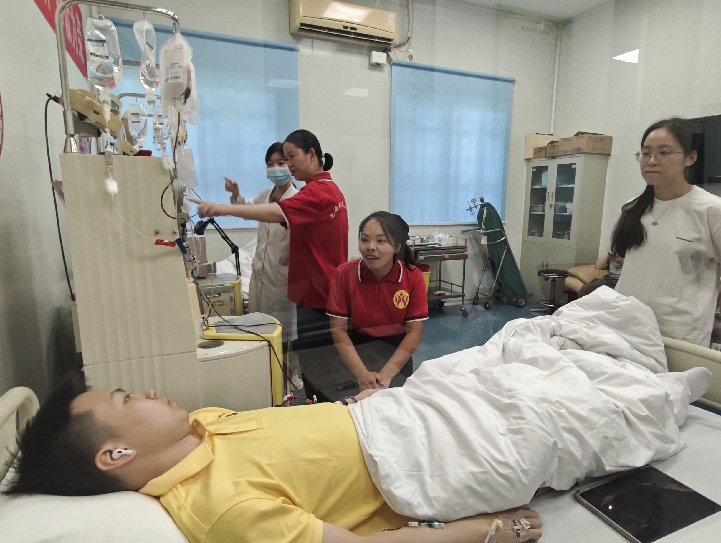 小余老师曾笑着问我:“你知道造血干细胞捐献陪护的核心是什么吗?”我一时语塞,她便细细解释:“就是陪捐献者聊聊天,用日常话题帮他们减轻心理压力,过程中还可以适时帮他们按按手臂、揉揉肩,让身体放松些。”在琪哥、锦华和余老师的亲自带动下,我也试着和第52例捐献者黎老师攀谈起来,从天气聊到日常,慢慢找到了陪护的节奏。
