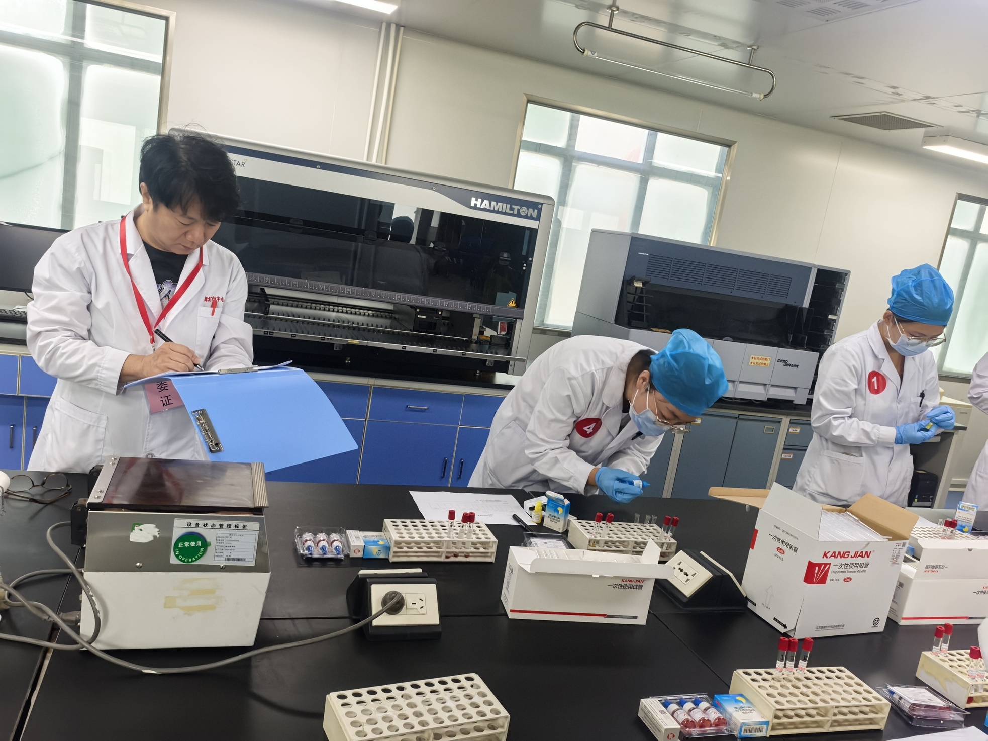 竞赛活动分理论知识考核和试验操作考核,理论考核内容涵盖了临床用血、无偿献血相关法律法规及专业知识。试验操作考核包括ABO正反定型、Rh血型鉴定、抗体筛查检测项目的全过程操作和结果判读。参赛选手们在竞赛过程中凭借扎实的专业知识和精湛的操作技能,展现了良好的职业素养和工作风采。