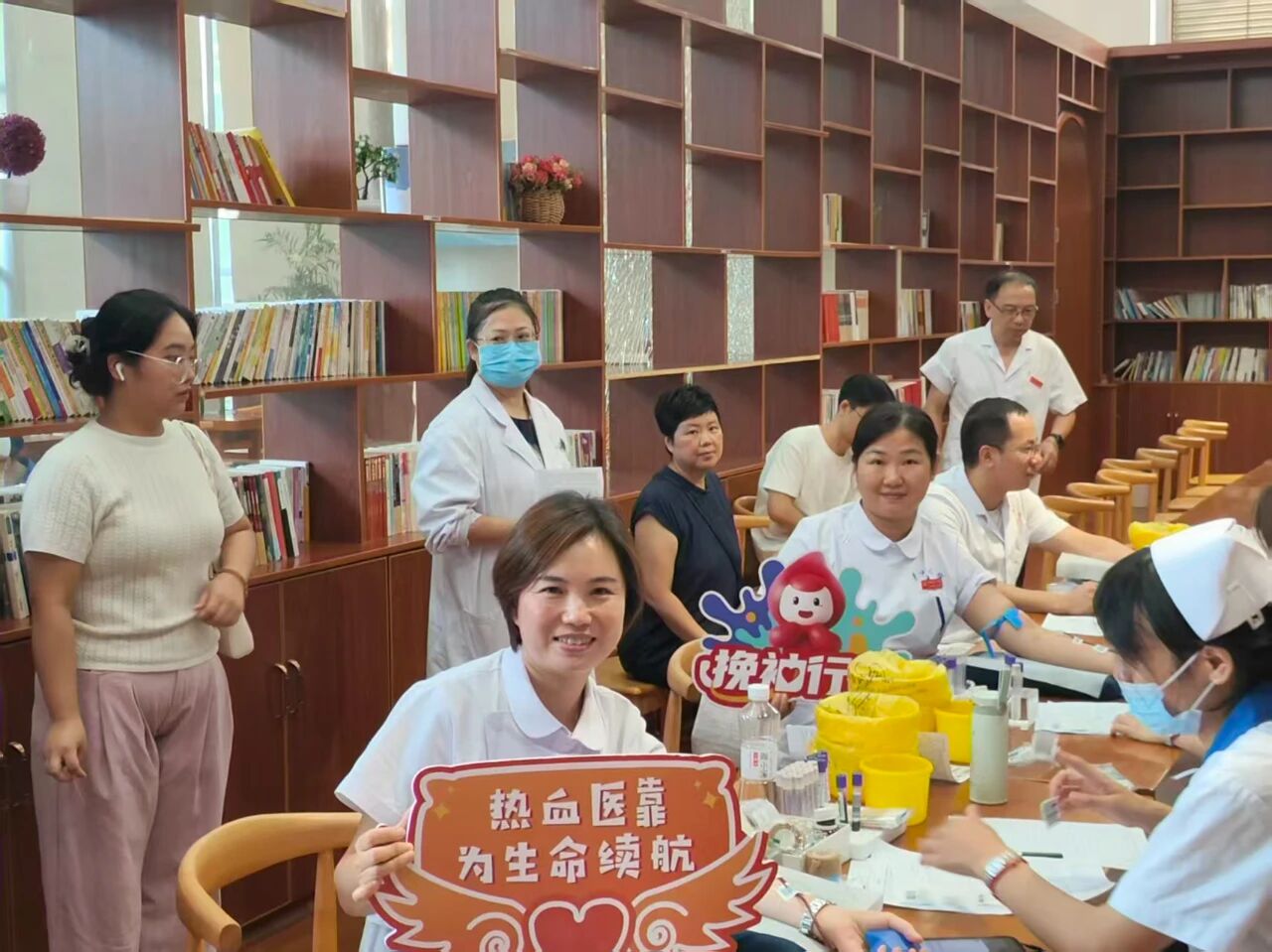 医者先行示范,为延续卫健系统职工带头献血的优良传统,院领导、科室主任及党员率先垂袖,以“热血红”辉映“天使白”,展现守护生命的双重担当。本次活动中职工携带家属积极参与。正如多次献血的医务人员所言:“献血是医者用另一种方式治愈生命”。