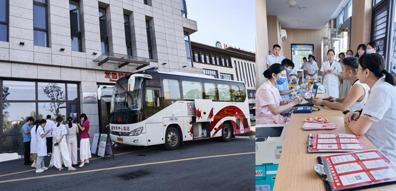 初秋清晨微风渐凉,却吹不散献血现场涌动的暖意。朝阳初升,两个院区的采血点早已排起长队。白大褂、护士服、行政工装......不同身份、不同岗位的人们在此刻因爱汇聚。科室主任、护士长带头参与,一线医护人员利用工作间隙踊跃前来,献完血立即返回岗位;更有职工带着孩子、携手家人共同奉献,让温暖的善举成为孩子成长的榜样。他们以医者的专业与热忱,完成了一场特殊的“生命救援”。