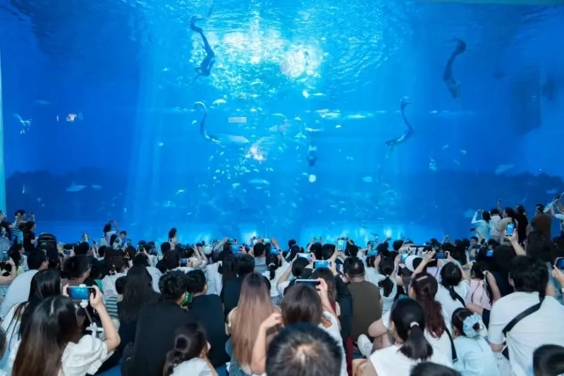 献血者与亲友一同漫步海底长廊,近距离观察奇妙的海洋生物,在趣味互动中学习生态知识,感受自然与生命的美好。