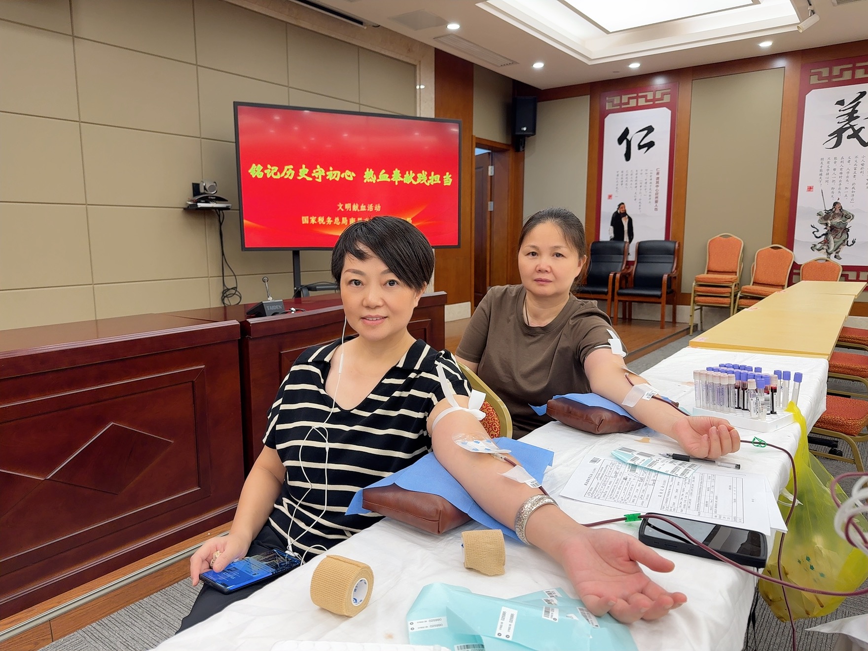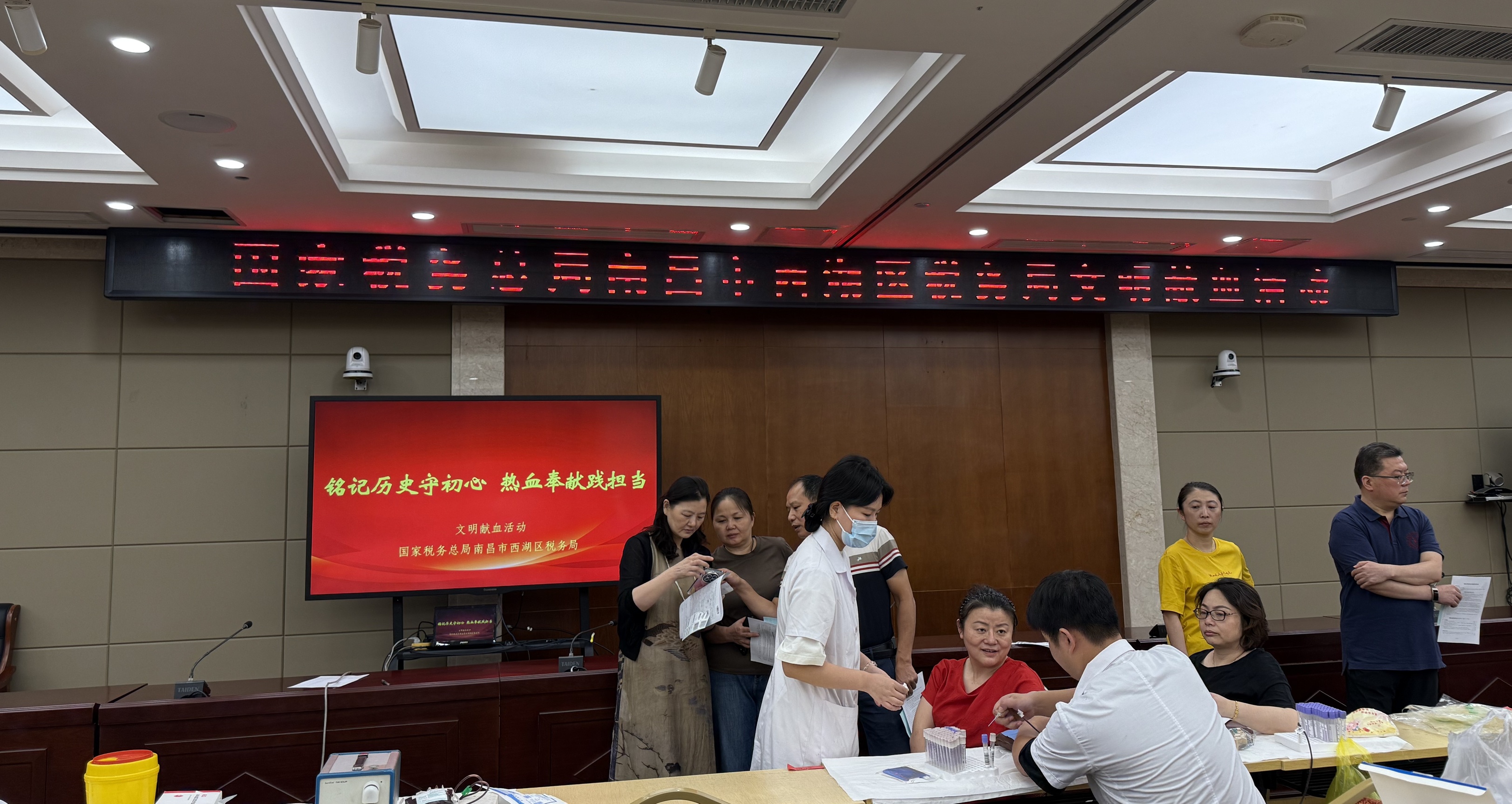 活动当天,参与献血的税务干部早早来到现场,在血站工作人员的指导下,有条不紊地进行信息登记、血压测量、血液初筛等准备工作。现场秩序井然,大家满怀热忱,耐心等待献血。无论是初次参与的“新兵”,还是多次献血的“老将”,都展现出坚定的决心和积极的态度。