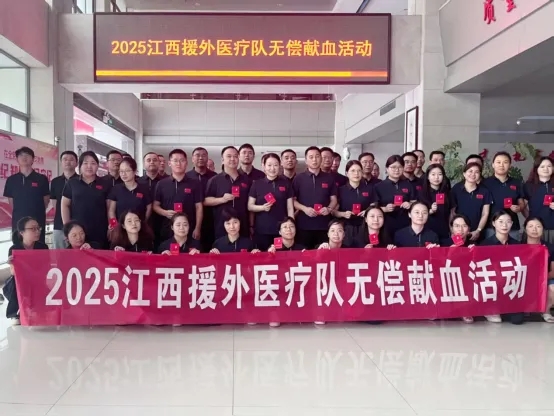 近日,2025年江西省援外医疗队出国前培训班开展集体无偿献血活动。在班委和党员同志们的动员号召下,全体队员踊跃参与,据统计,本次志愿献血共有17名队员参与,总献血量达到4000毫升。