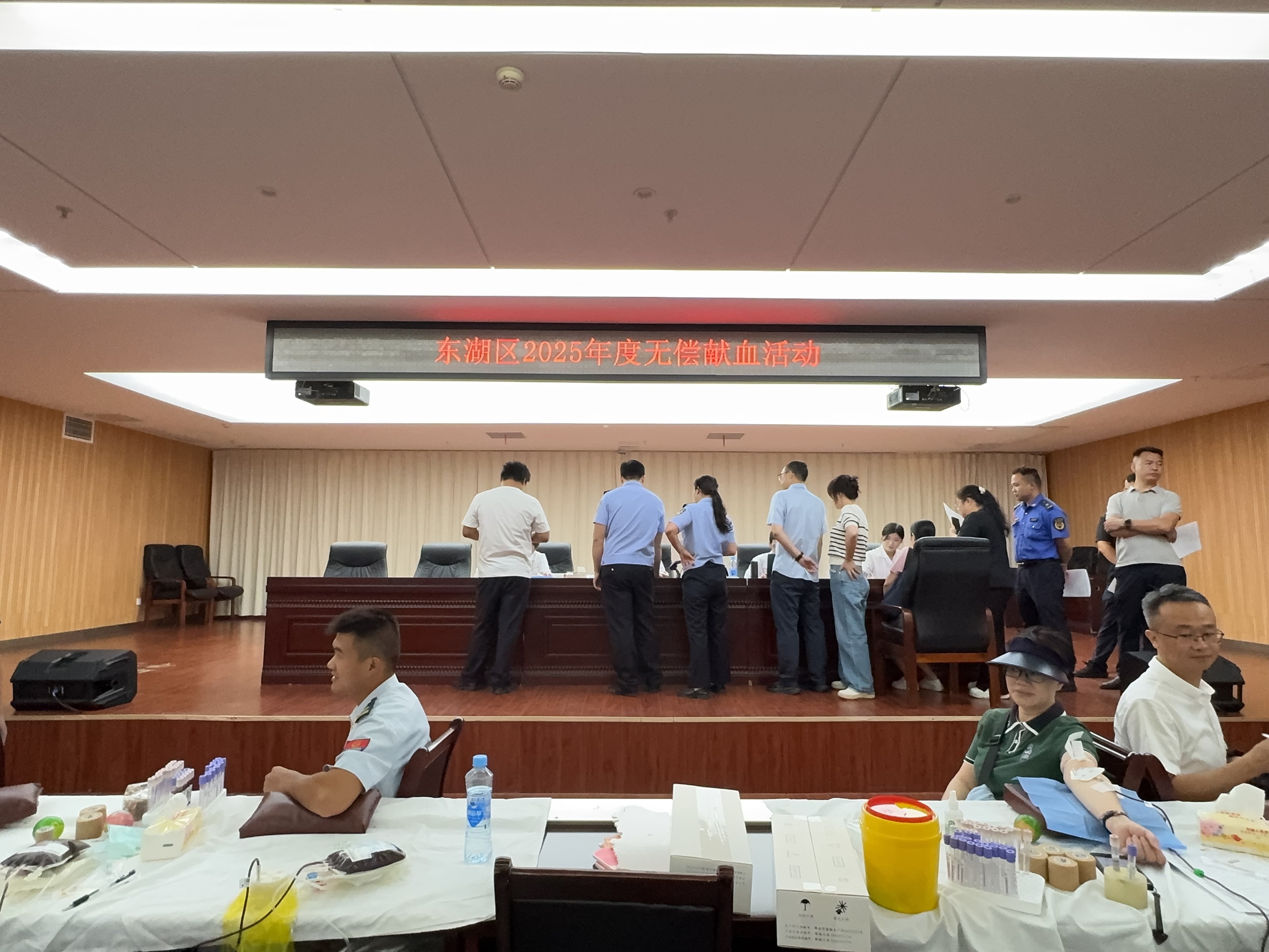 秋分时节,爱心涌动。9月23日,一场充满温情与奉献的无偿献血公益活动在东湖区文化活动中心四楼顺利开展。本次活动由东湖区政府与我站携手精心组织,得到了全区上下的热烈响应,来自区直机关、企事业单位及各镇、街(管理处)的广大干部职工纷纷踊跃参与,以实际行动诠释大爱精神,传递社会正能量。