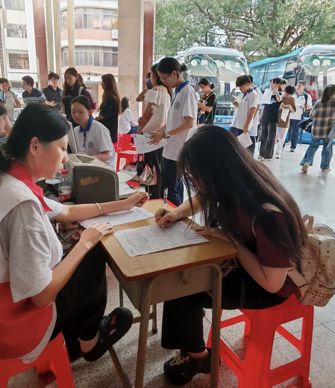 秋叶静美,热血滚烫。活动正式开始前,献血车旁便已排起了长长的队伍。同学们在血站工作人员和校园志愿者的引导下,严格按照流程进行体检、登记、初筛。现场人头攒动却秩序井然,每一个环节都有条不紊。炎热的天气丝毫抵挡不住同学们奉献爱心的热情,长长的队伍成了校园里最动人的风景线。