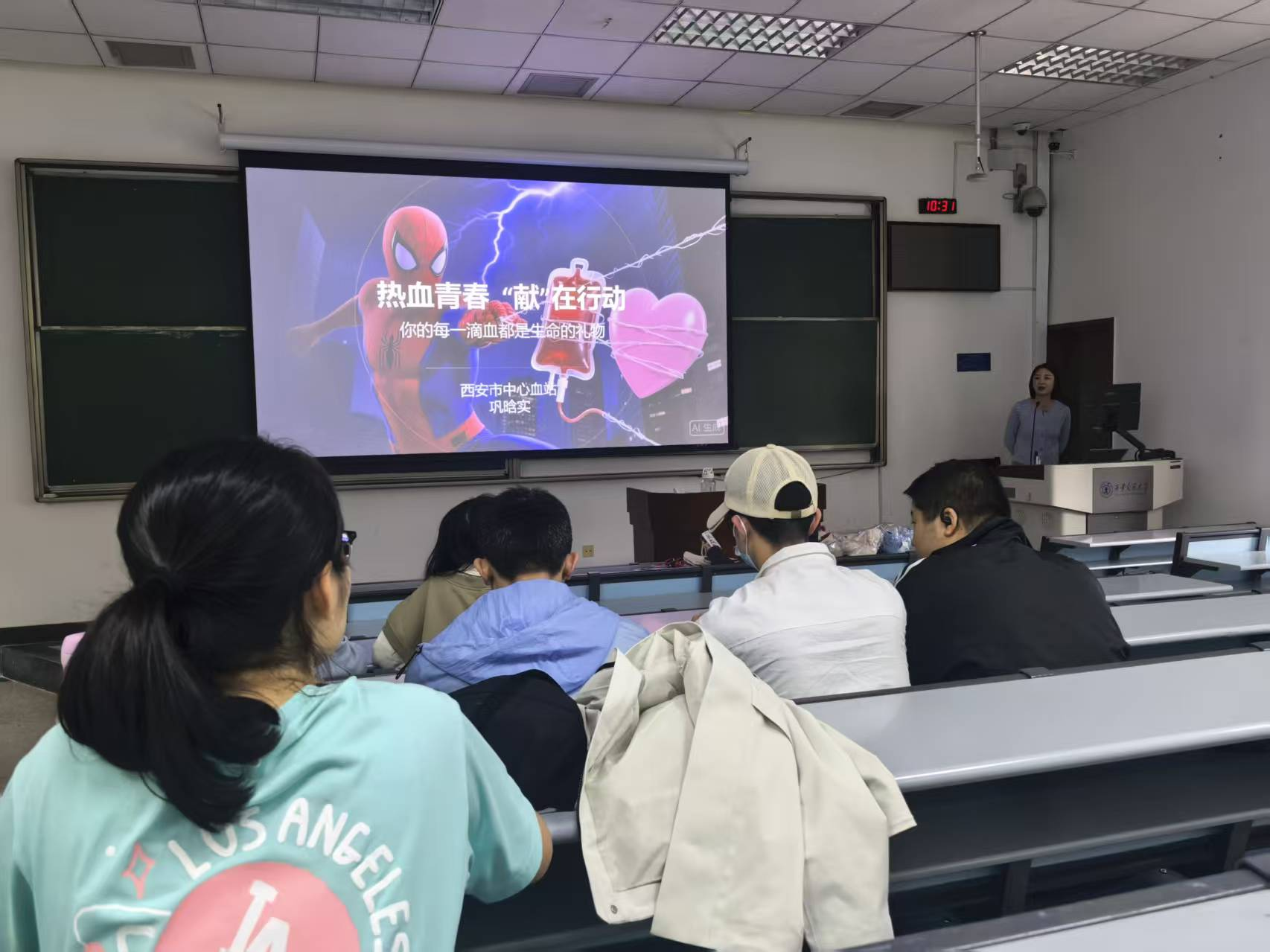 宣讲活动启动后,宣讲团的褚晓月、巩晗实、刘晓玄等成员已经先后在西安交通大学创新港校区、西安交通大学咸宁校区、长安大学未央校区开展了多场宣讲活动。宣讲现场气氛热烈,通过生动的宣讲及现场互动,传播了科学献血知识的同时,也收获了同学们的支持与认可。参加的同学纷纷表示愿意参与献血,为临床病患奉献一份爱心、带去生的希望。