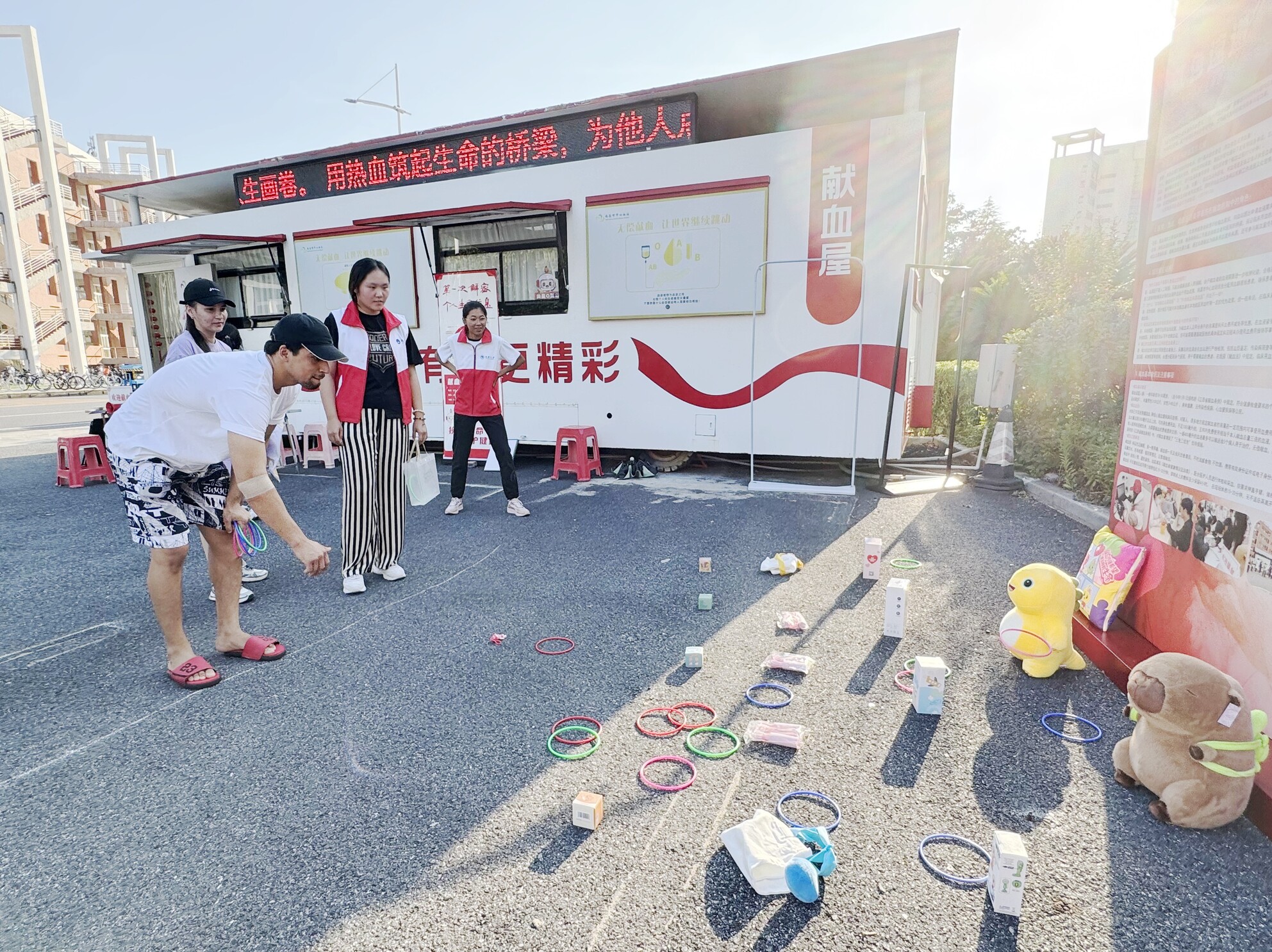 带来快乐”献血活动在此温情开展。活动创新加入套圈、大转盘等互动游戏,参与者献血后即可获得游戏机会,通过趣味挑战赢取专属奖励,让公益行动更添活力。