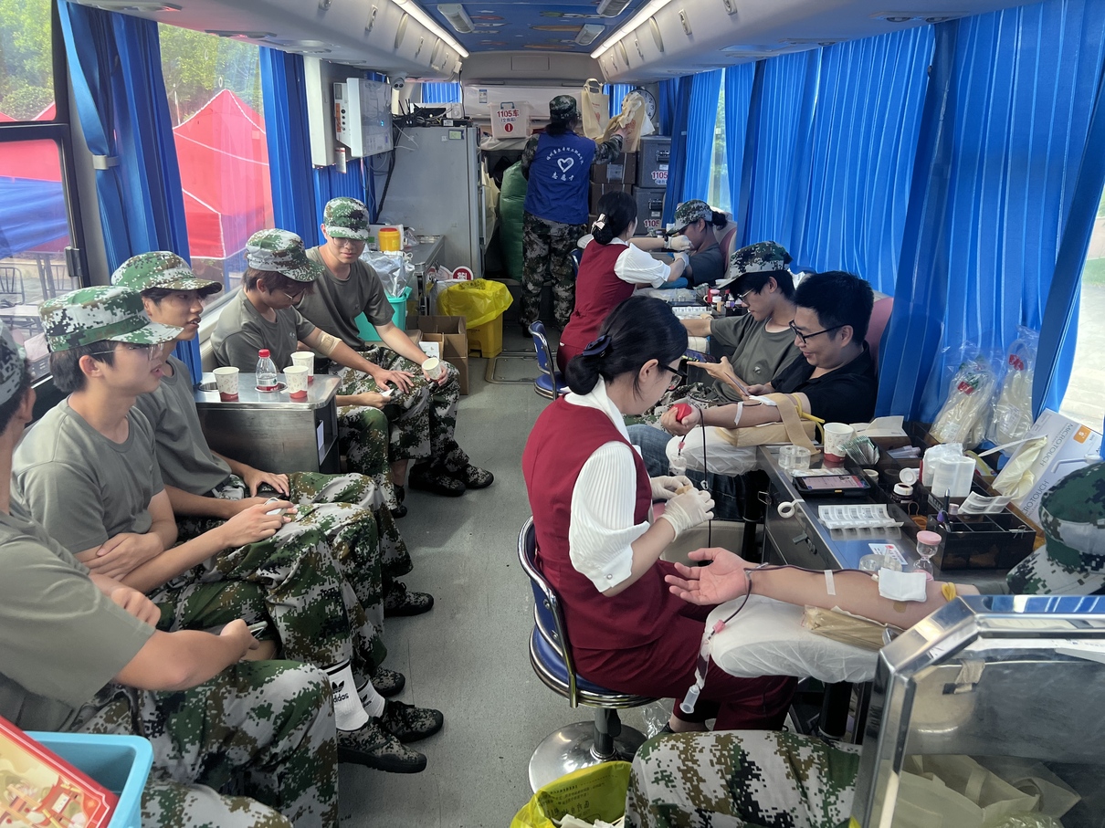 活动现场,身着迷彩服的学子与教师们热情高涨、有序参与。考虑到正值军训期间,医护人员对每位同学进行详细健康征询、献血前检测、细心交代好饮水休息等注意事项,确保大家安全舒适完成献血。活动现场,有的同学是第一次献血,虽有一丝紧张,却在护士小姐姐的温暖引导下勇敢完成;老师们更是主动带头参与,用榜样力量带动更多人加入爱心队伍。