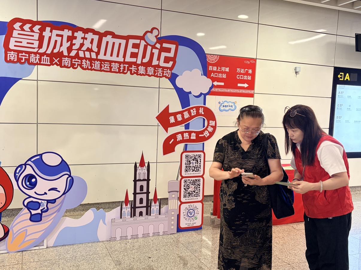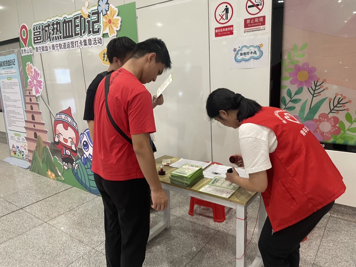 南宁轨道交通经过长期运营,已成为南宁市民的主要出行交通方式之一。为借助南宁轨道交通人流量大、覆盖人群广的优势,南宁市献血办联合南宁轨道交通运营有限公司,于2025年9月29日至12月31日,在1、2、3号线共6个指定站点,开展邕城热血印记——南宁献血×南宁轨道运营打卡集章活动,通过南宁献血公益IP形象“邕小献”与南宁轨道吉祥物“宁仔”的联动,以年轻化、趣味化方式增强公众参与感。