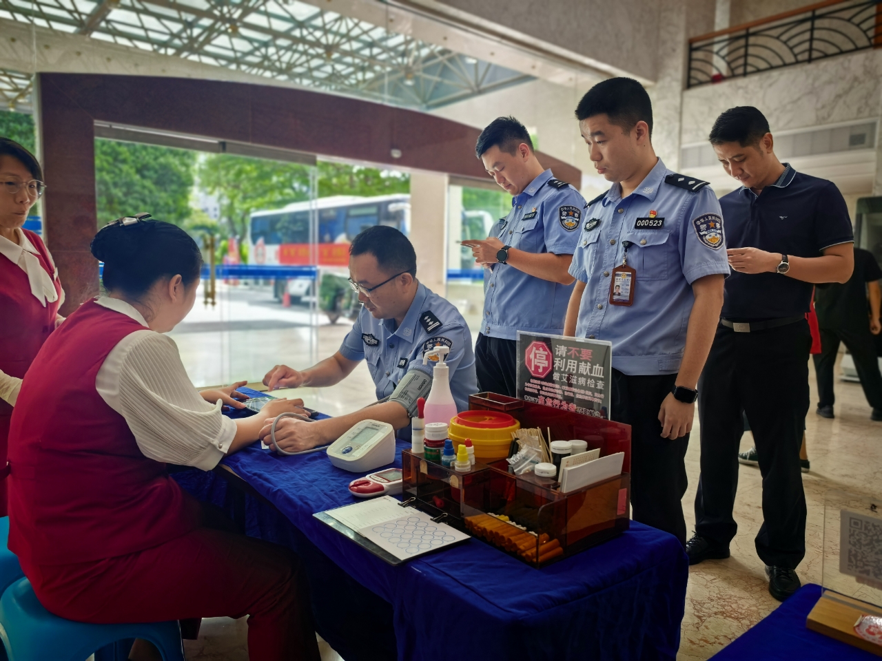 活动当天,厅领导主动带头参加无偿献血,广大民警职工也纷纷来到献血点,在医务人员的引导下,有序完成扫码登记、体检初筛、献血等环节。
