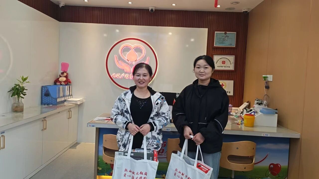 秋雨绵绵,爱心暖暖。两位医务工作者从医院下班后,特意绕道前来献血屋完成这次“热血接力”。她们的白大褂或许已换下,但医者的担当与仁心却从未褪去。这两位白衣天使的善举,正是“热血献礼祖国,爱心接力团圆”活动精神的生动体现。她们既在岗位上用精湛医术守护生命,又在工作之余用热血为生命护航,用实际行动诠释着何为“医者仁心”。