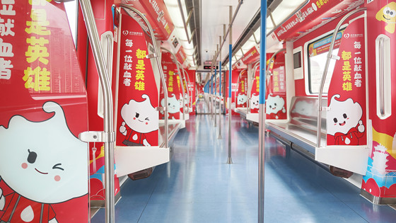 据悉,“英雄红”涂鸦列车将在武汉轨道交通线持续运营一年。恰逢武汉地铁涂鸦艺术季,为营造浓郁的无偿献血公益氛围,武汉血液中心还携手中南地铁传媒在武汉地铁三阳路站内打造了无偿献血主题涂鸦墙打卡点,整个墙面充满了“热血红”元素,,色彩鲜艳的巨型A、B、AB、O血型卡通人物图案跃然墙上,与武汉市无偿献血吉祥物共同绘成“热血武汉”的绚丽图景,期待广大市民前往打卡,共赴“热血浪漫之约”。