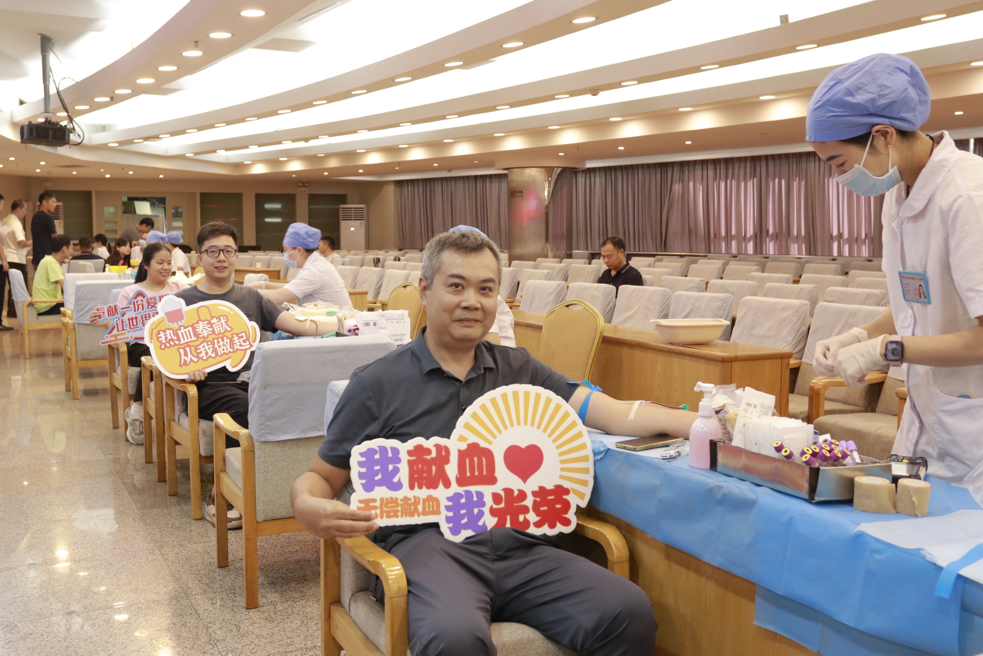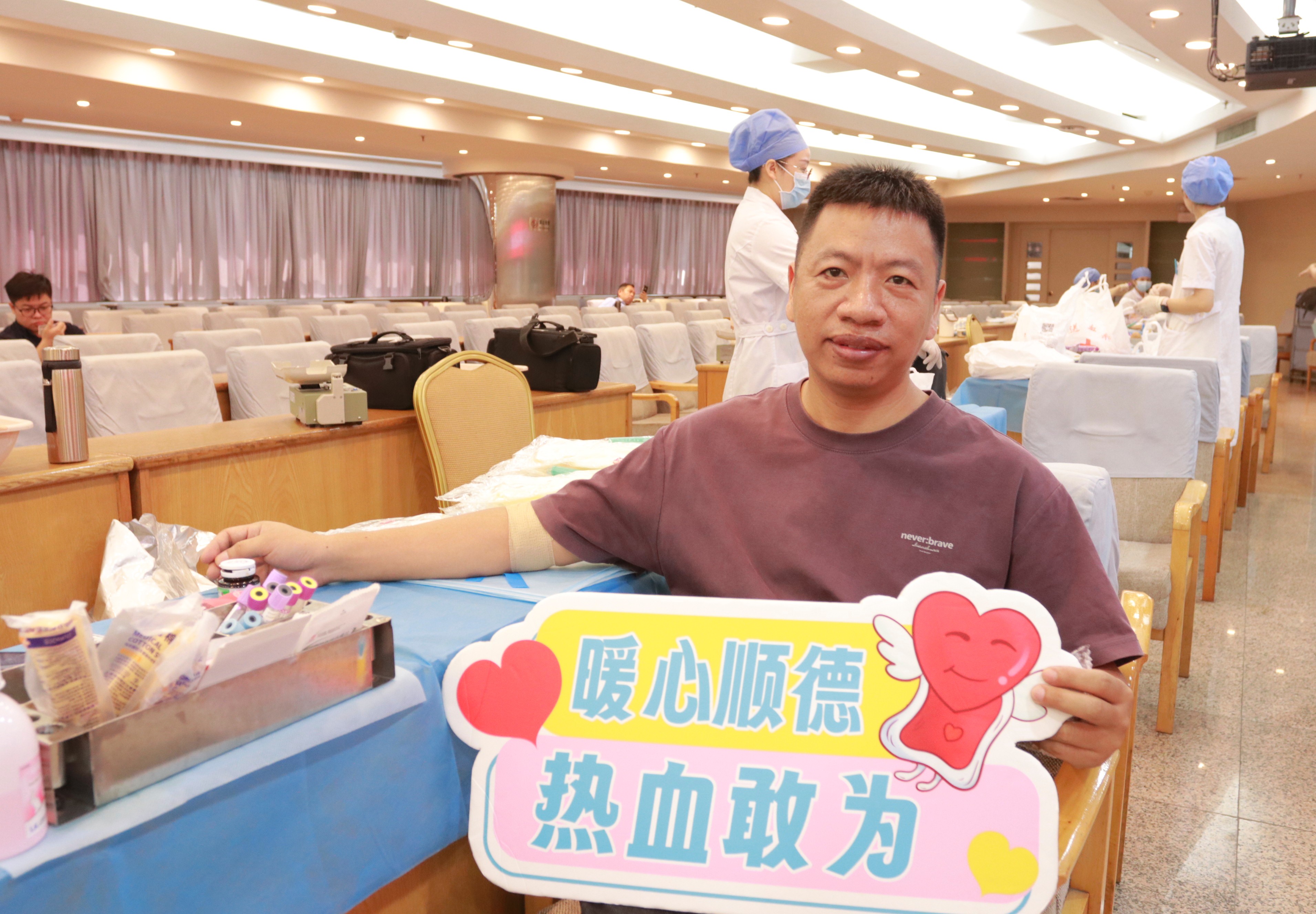 随着强台风逐渐远离,一场充满爱心的无偿献血活动在大良街道办事处会议中心举行,活动全程饱含温情与力量。
