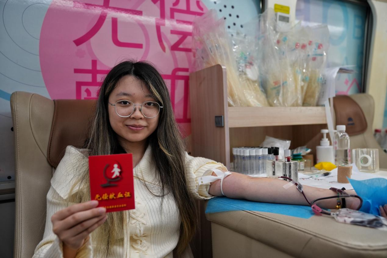 大一新生何佳莹参加了献血活动。