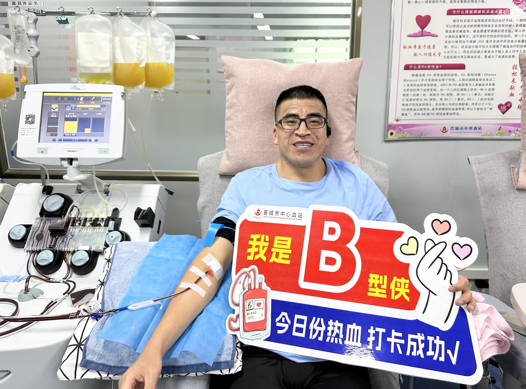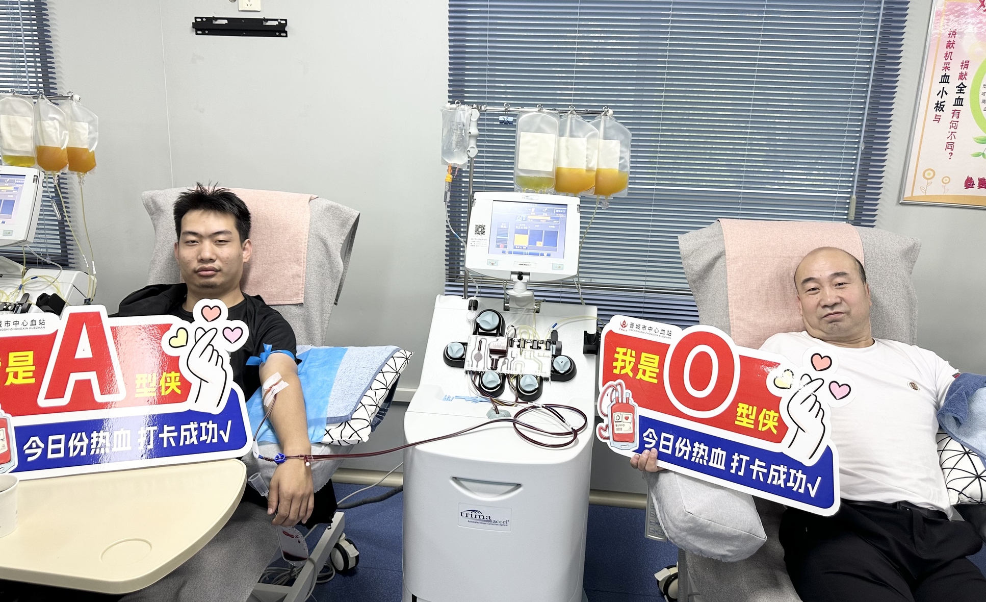 在众多的献血者中,还有两位特殊的“工作人员”。焦晋东和张萌,他们都是晋城市红十字会的志愿者,平日里经常在爱心献血屋为其他献血者提供温馨服务。这天,他们得知临床需要他们的血型,便毫不犹豫地前来捐献,从服务者瞬间转变为捐献者,以实际行动践行了“我为人人”的志愿精神。