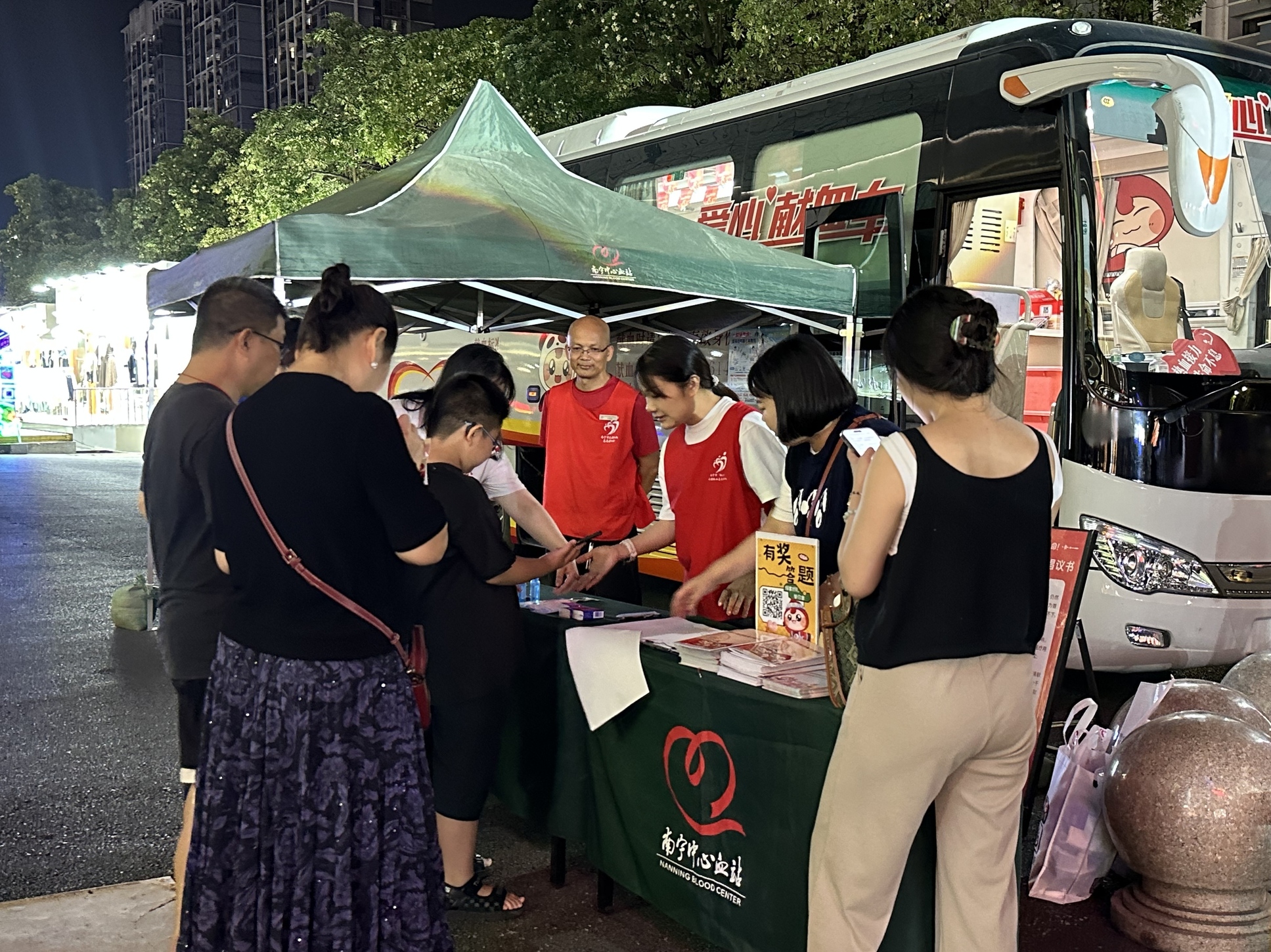 南宁中心血站志愿者开展科普宣传活动,市民踊跃参与互动