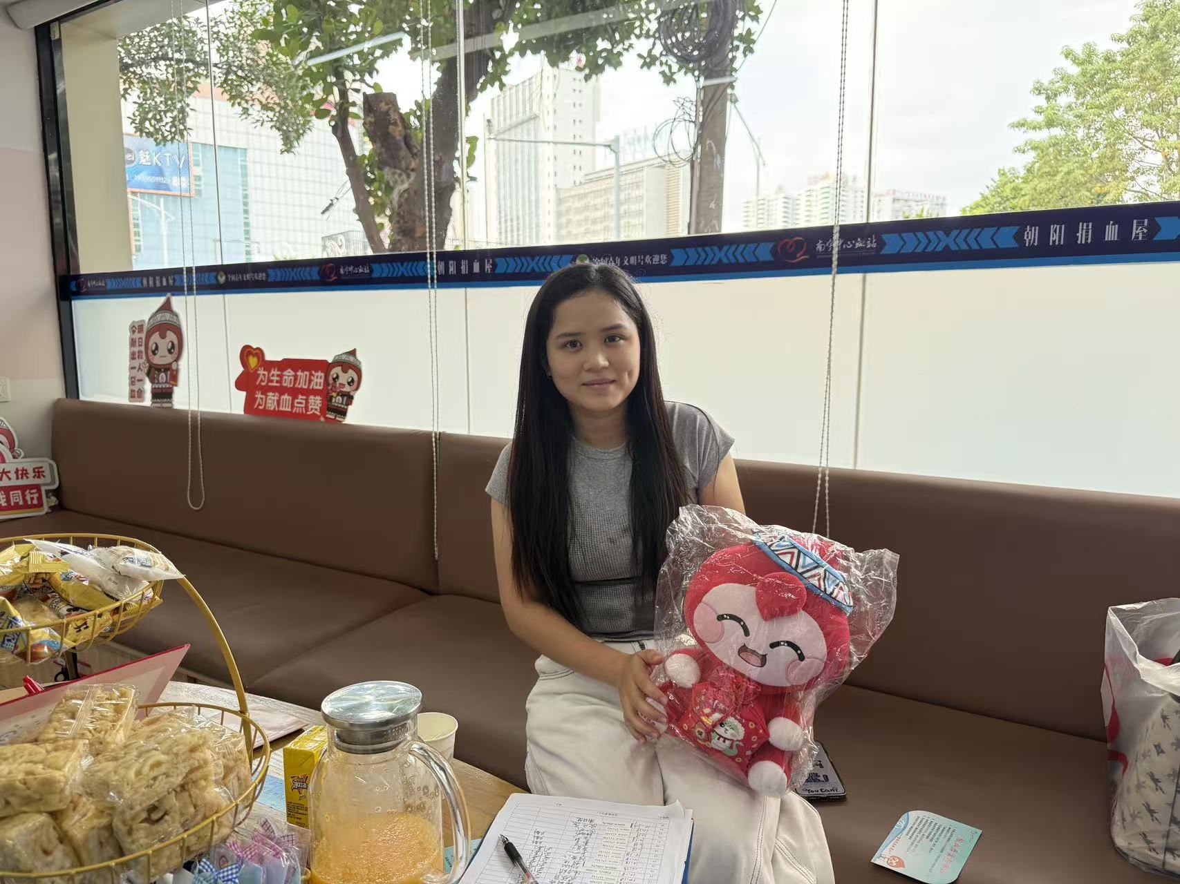 谢琼慧同学在朝阳捐血屋献血后拍照留念