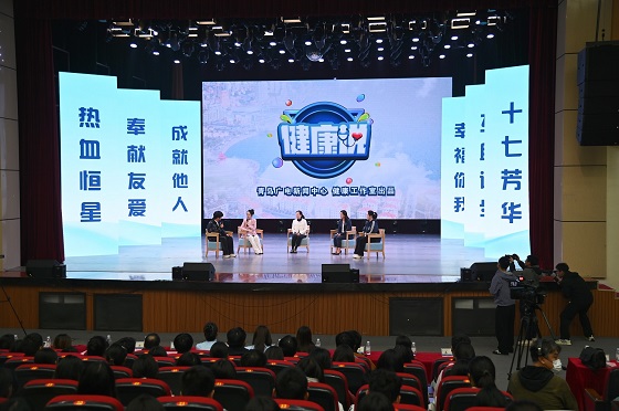 下午两点三十分,由青岛广电全媒体新闻中心健康工作室推出的《健康说》现场直播准时开启。主持人滕慧子与全国无偿献血促进奖个人奖获得者、青岛恒星科技学院团委书记长隋立欣,青岛市中心血站中心献血服务部主任戴梓宁,以及该校学生代表赵延、商慧麟,围绕师生最关心的献血问题,与现场近700名观众展开深度交流。隋立欣结合学校多年推动无偿献血的实践,分享了诸多温暖故事和有效经验。从“献血车进校园”减少师生奔波,到持续两周的献血时段方便学生错峰参与;从主题团日、榜样表扬到培养学生志愿者力量带动更多人参与——学校始终以“让献血更便捷、更智能、更融入校园生活”为目标,让无偿献血从“任务式参与”转变为师生主动践行的生活方式。在互动过程中,戴梓宁针对同学们比较关心的优先用血、免费用血、献血后会不会影响身体健康等方面,从医学原理进行了权威解答。血液每时每刻都在进行新陈代谢,科学献血无损身体健康,但却可以救助一个生命,挽救一个家庭。对于无偿献血者及其亲属来说,青岛市先后出台了血费减免政策、优先用血政策、四免政策等,为献血者赢得来自政府和社会的认可与尊重。学生代表商慧麟、赵延的分享更具感染力。已获得山东省爱心大学生荣誉的赵延提到,从献血2000毫升到志愿服务270余小时,让他深刻明白“被需要的价值”;商慧麟则用“克服紧张与胆怯的小小勇气,可能正是延续他人生命的大希望”,鼓励在场同学迈出献血第一步。两位学生的成长与感悟,让现场师生真切感受到“热血恒星”精神在校园中的传承。
