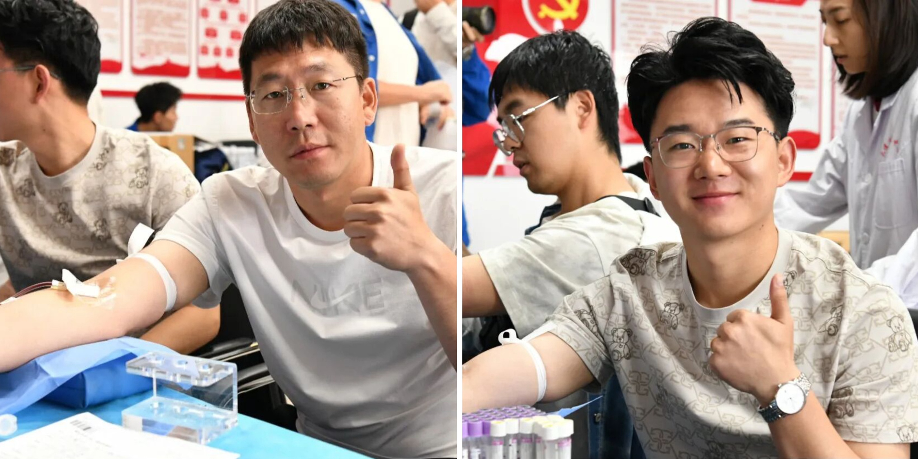 第一联合车间的师徒组合王虹霖与张康鑫并肩而坐。五年工作默契化作献血时的相互鼓励:"从入职以来就是师傅带我熟悉职场、精进工作,现在献血也有师傅陪着,第一次献400ml一点也不慌!"