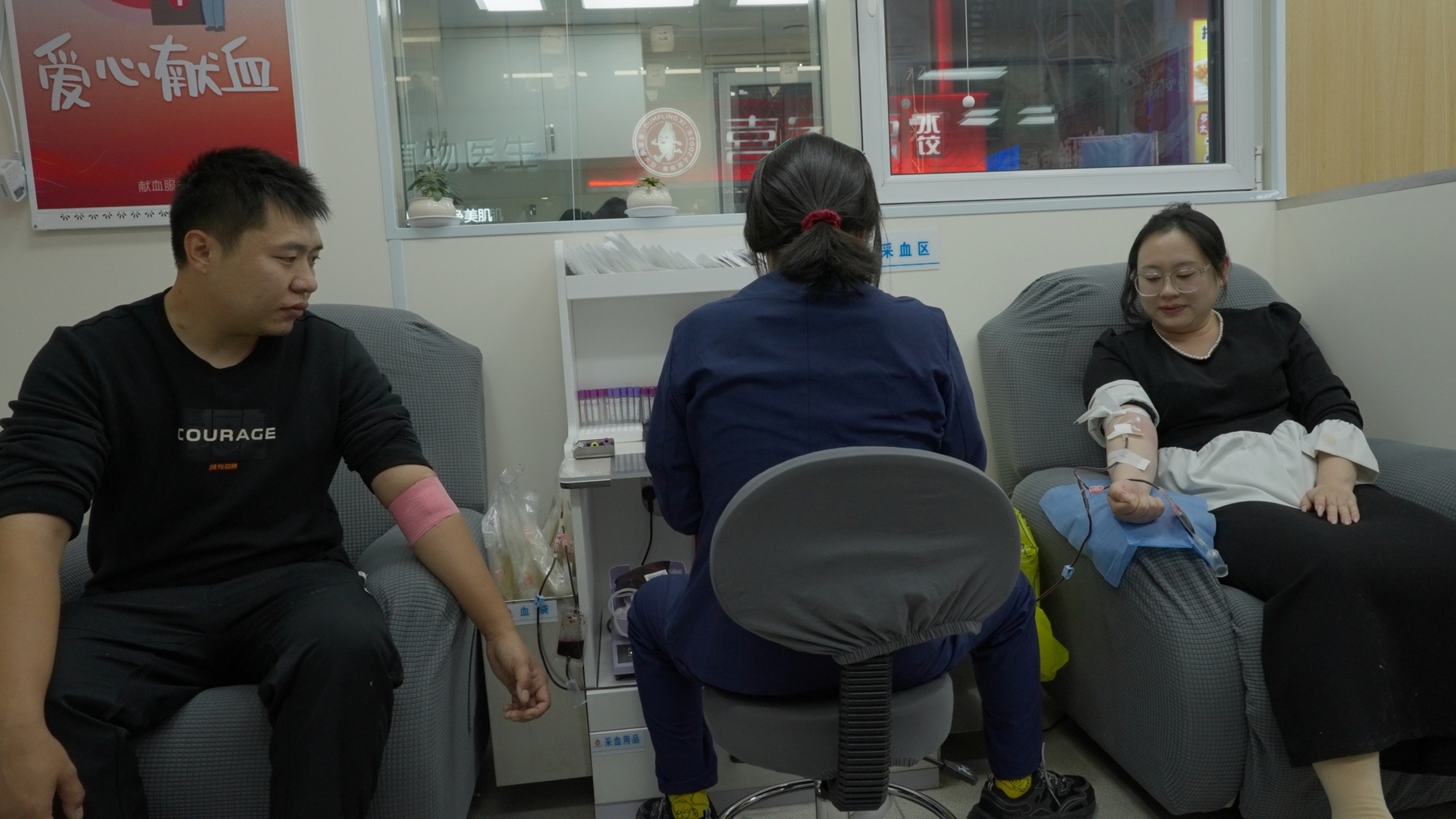 然而,从未接触过献血的郑先生,走到采血台前时难掩紧张,李女士握紧他的手,将自己多年的献血经验娓娓道来:“每次献血能为一位等待救治的患者带去希望,我们的一次挽袖,可能就是别人的重生机会。”献血屋的工作人员也耐心地介绍2025年5月1日起开始实施的《沈阳市献血条例》并告知献血后的注意事项。这让郑先生逐渐放松下来,顺利完成了人生中第一次献血。