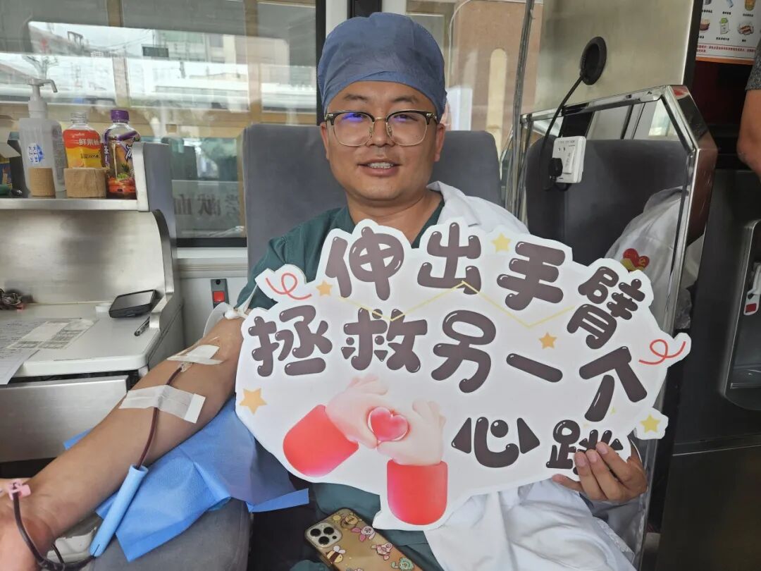 手术麻醉科的唐永平在完成献血后,激动地告诉我们:“作为一名医务人员,我们都深知,临床救治过程当中,血液的重要性,同时血液是没有办法人工制造的,我们更应该积极的加入到无偿献血的行列当中,用我们的热血,继续守护患者们的生命!”简短的话语里满满的都是为医者的初心与信念。