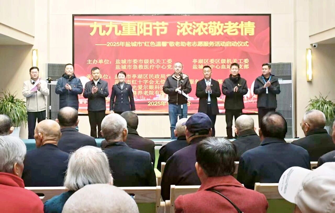 此次活动凝聚多方力量,由盐城市委市级机关工委、亭湖区委区级机关工委、盐城市急救医疗中心党总支、盐城市中心血站党支部联合主办,亭湖区民政局党总支、盐城市红十字会无偿献血志愿服务队党支部、盐城曙光爱尔眼科医院党支部、盐城燕舞养老院有限公司共同承办。活动以志愿服务为纽带,深度传承尊老敬老的中华传统美德,将党和政府的关怀、社会各界的温情精准传递到每一位老人心中,让老人们在秋日里真切感受到社会大家庭的温暖。