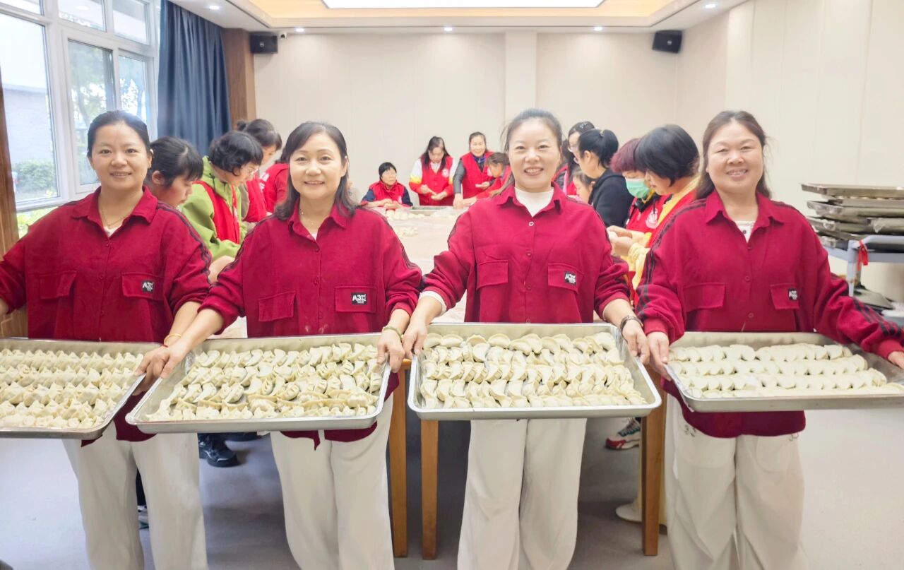 文艺表演结束后,一场充满烟火气的 “爱心水饺宴” 温馨开启。志愿者们迅速分工包饺子,大家默契配合,动作麻利。包饺子的志愿者手法娴熟,一个个饱满圆润的饺子很快摆满了桌面,欢声笑语中满是温情。中午时分,热气腾腾的饺子端上桌,志愿者们与老人们围坐在一起同食共话,在鲜香的美食与阵阵欢笑中,细细品味重阳佳节的团圆滋味,感受如家般的温暖。