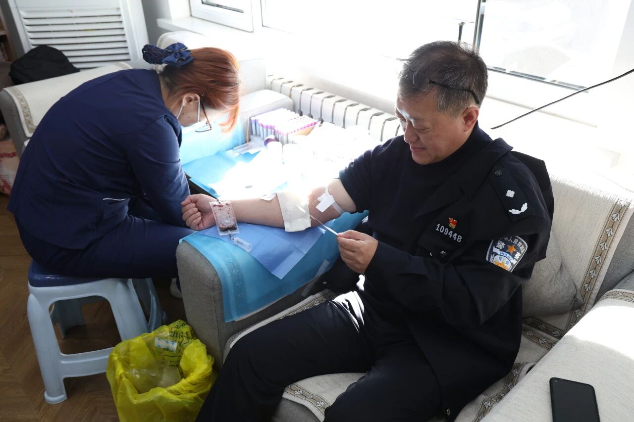 当日上午,献血活动现场爱心洋溢。从分局领导到基层警员,大家有序排队,在医护人员的指引下,认真完成信息登记、健康检查等流程。一袋袋温热的血液,承载着公安干警对人民群众的深厚情谊,传递着守护生命的坚定信念。正在献血的皇城派出所民警赵一鸣表示,“参与无偿献血,是用另一种方式践行从警初心,希望能为急需用血的患者带来希望。”活动现场,不少民辅警在完成献血后稍作休息,便立即返回工作岗位。他们用实际行动展现着公安队伍特别能吃苦、特别能奉献的优良作风。此次成功献血的133名警员中,既有连续多年坚持献血的“老将”,也有初次参与的“新兵”,共同构筑起一道守护生命的爱心防线。