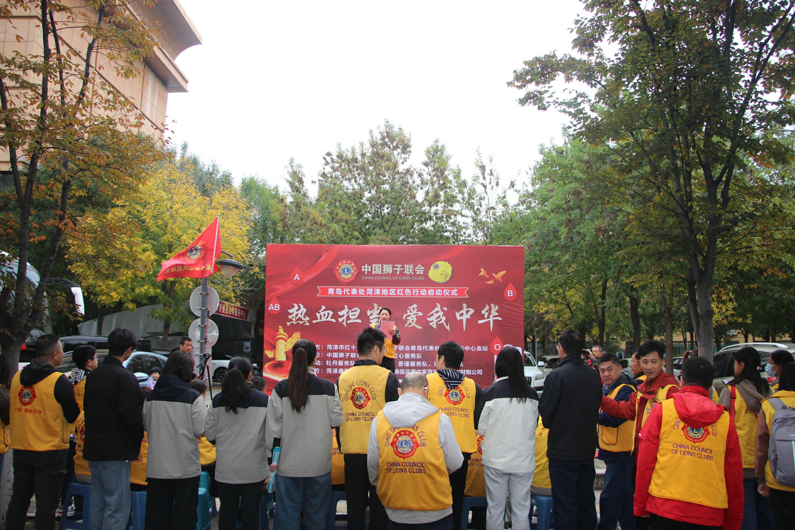 10月19日,由菏泽市红十字会、中国狮子联会青岛代表处菏泽地区、菏泽市中心血站联合主办的“热血担当 爱我中华”中国狮子联会青岛代表处菏泽地区红色行动无偿献血活动,在菏泽中华东路茂业百货献血点举行。菏泽市红十字会和市中心血站相关负责人、中国狮子联会领导青岛代表处2025-2026 年度负责人共同出席了活动启动仪式。现场吸引了众多会员与社会爱心人士踊跃参与,用实际行动诠释了关爱生命、无私奉献的精神。