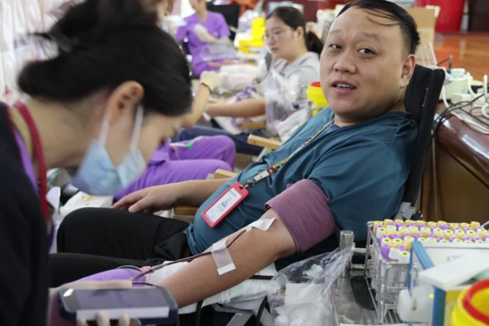 一早便乘班车来到总部,成为了本场活动的首位献血者,他兴奋地表示自己是第一次参加集团组织的无偿献血活动,结束后顾不得休息又匆匆赶回工作岗位。