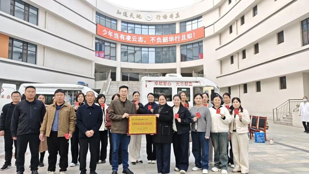 尽管秋末冬初寒意渐浓,却丝毫未减弱教师们奉献爱心的热情。献血现场温馨而有序。在血站工作人员的引导下,教师们认真填写献血登记表,依次接受血压测量、血液检测等流程。在献血的队伍中,牡丹区二十一中教育集团党委书记兼中山路学校校长李传波的身影格外引人注目。他与教师们一同挽起衣袖,从容献血,以实际行动践行公益精神,为全体师生树立了榜样。这支爱心队伍中,既有常年坚持献血的“公益老兵”,也有初次加入的“热血新人”。大家纷纷表示,无偿献血不仅是一项崇高的公益事业,更是传递爱心、拯救生命的具体行动。作为教育工作者,更应以身作则,践行志愿服务精神,为学生树立榜样。血站授予牡丹区南城中心学校、二十一中教育集团中山路学校“无偿献血应急爱心团队”牌匾,以此表彰两校在无偿献血公益事业中的积极贡献,也标志着双方在推动无偿献血事业发展中建立了更加紧密的合作关系。