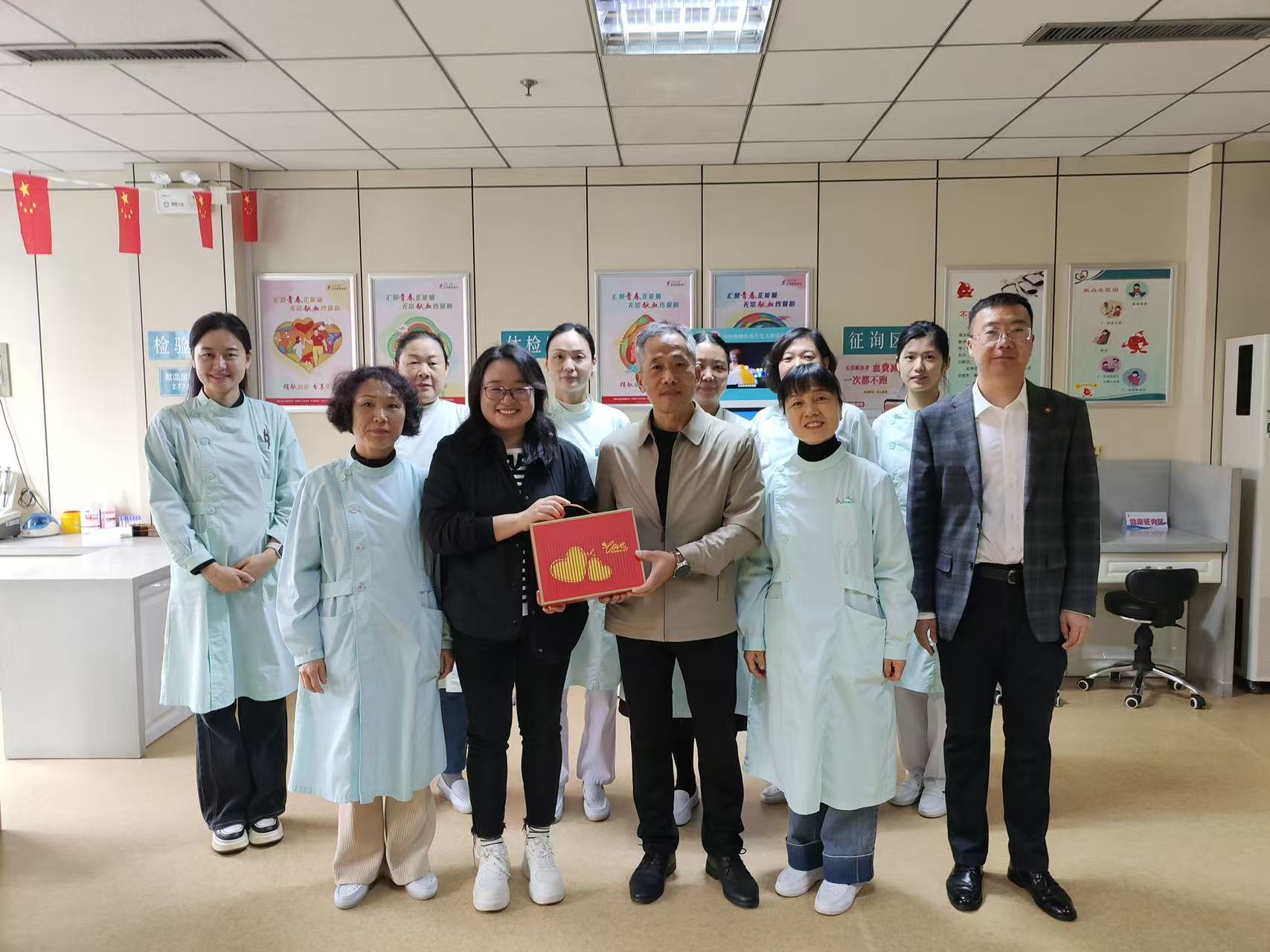 “希望《献血法》尽快修订,延长法定献血年龄,让我还有机会再来做贡献”。陈本禹老师多年来坚持献血至60岁,是今年我市献血至60岁的献血者中献血总量最多的“60岁献血冠军”。今年三月份便已“退休”的他,近日,又“回家”了!他带着对献血事业的无限眷恋与热爱,带着与机采成分室工作人员多年来结下的深厚情谊,再次走进机采成分室。陈本禹老师深知,每一袋血液都可能挽救一个生命,每一次坚持都是对社会的深情告白。他说,献血不仅是爱心的传递,更是公民责任的体现。他的这份执着与深情,深深打动了血站的每一位工作人员。大家围坐在一起,听他讲述这些年来献血过程中的点点滴滴,那些或感动或温暖的瞬间,仿佛一幅幅生动的画卷在眼前展开......