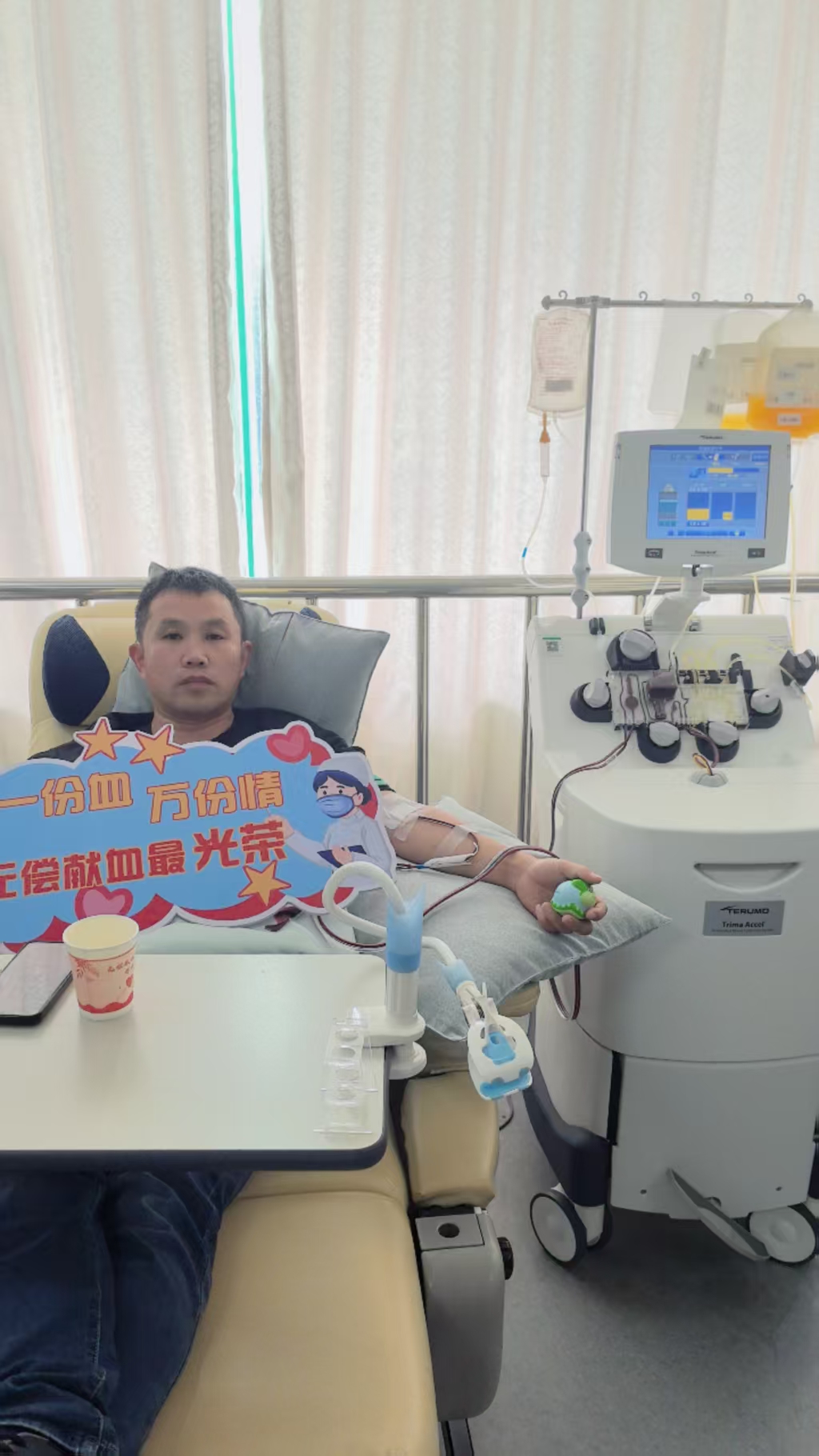从献血证上的“第1次”到“第100次”,从最初的全血捐献到后来成为血小板捐献的“常客”,十九年间,他的献血总量达到38900毫升——这相当于将全身血液更换了近50次。每一次奔赴献血点,都是一场与时间的爱心赛跑;每一次躺在采血椅上数小时,都是一次对生命承诺的践行。