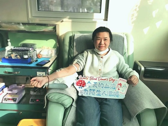 “献血这么重要的事,我居然差点忘了!距离上次献血就差几天就满一年了。” 刚结束献血的董蕾蕾,一边接过献血证,一边对医护人员笑道。一句朴实无华的话语,却藏着她把无偿献血当作人生责任的坚定信念,让人倍感温暖。董蕾蕾的爱心献血之路,始于2010年8月一个普通日子。“我献血起步不算早,当时听朋友随口提起无偿献血很有意义,心里突然就萌生了尝试的念头。” 她回忆道,第一次走进献血点时,心里满是忐忑与不安,但想到自己的血液可能挽救他人生命,便鼓起勇气完成了第一次无偿献血——300毫升全血。这次勇敢的尝试,在她心中埋下了爱的种子,也开启了长达十五年的热血奉献之旅。2014年11月,董蕾蕾在即墨利群购物时,一辆停在广场上的献血车意外映入眼帘。那份深埋心底的爱心瞬间被唤醒,她没有丝毫犹豫,径直登上献血车,再次献出300毫升热血。然而,由于后续工作调整、家庭琐事等原因,这份爱心行动被暂时搁置。时光流转至2020年4月,一次与朋友的闲聊中,话题再次提及无偿献血。“献血是好事,没坚持下来真是可惜。” 董蕾蕾说,第二天她便专程赶往即墨佳乐家献血车,一次性献出400毫升全血。从这次 “重启” 开始,无偿献血彻底成为她生活中不可或缺的重要安排,此后基本保持每半年献血一次的规律节奏,从未间断。“今天休息在家,突然想起快一年没献血了,赶紧打车过来补上这份‘约定’。” 董蕾蕾脸上洋溢着真诚的笑容,语气坚定而从容。如今在她眼中,献血早已从最初的 “尝试” 变成了 “习惯”,更成为一份沉甸甸的社会责任。“能通过自己的一点努力帮助别人,这是最有意义的事。”十五年光阴流转,从初次尝试的忐忑不安,到中断后的毅然重启,再到如今的执着坚守,董蕾蕾用一次次挽袖献血,书写着平凡人的伟大。累计下来,她的献血量早已突破数千毫升,每一滴热血都汇入了爱心人士组成的生命长河,为无数濒临绝境的患者带去生的曙光。