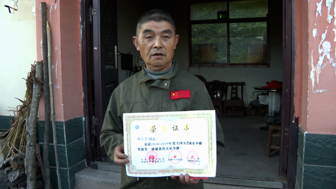如今,周宗全虽已不再献血,但他并未停止自己的善行,平时主动帮助乡邻默默地做事,主动为周边的老人理发。在他的感染下,村里悄然掀起一股互助新风,好人好事、孝老爱亲的善举不断涌现,也带动更多的人加入无偿献血的队伍。