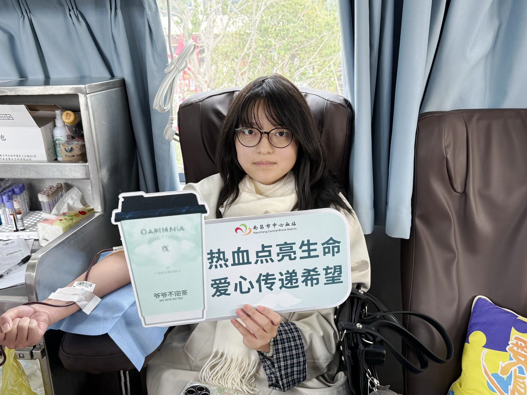 11月13日,豫章师范学院的校园里格外热闹——南昌市中心血站的献血车如约而至,血站联合商家“爷爷不泡茶”带来了满满惊喜:丢沙包投投乐赢水杯、成功献血可送奶茶抽福袋!这场“奉献+福利”的活动,吸引了多位00后的同学加入其中,完成了人生中的“热血首秀”。