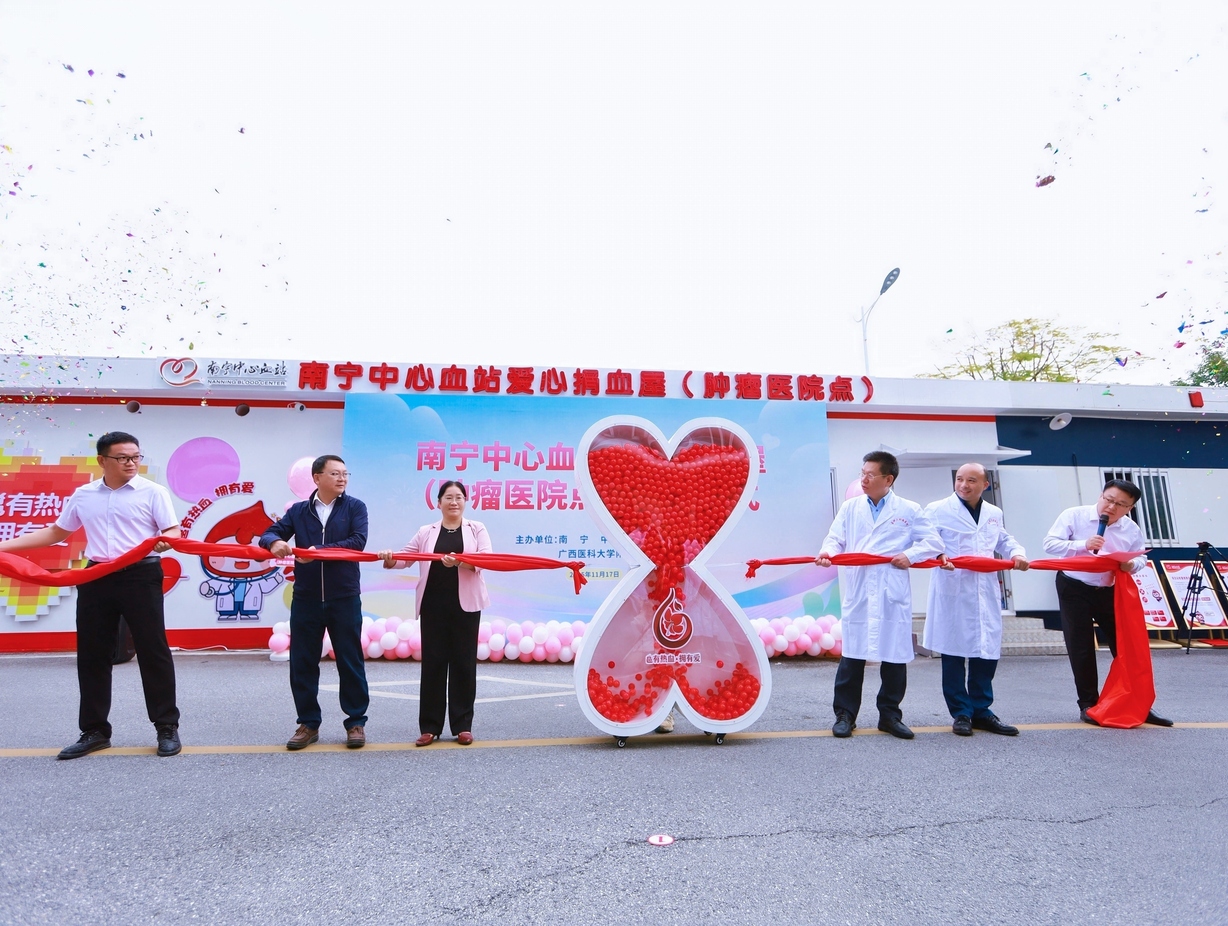 11月17日,南宁市第五个“站院共建”捐血屋——南宁中心血站爱心捐血屋(肿瘤医院点)在广西医科大学附属肿瘤医院五象院区内正式揭牌启用。