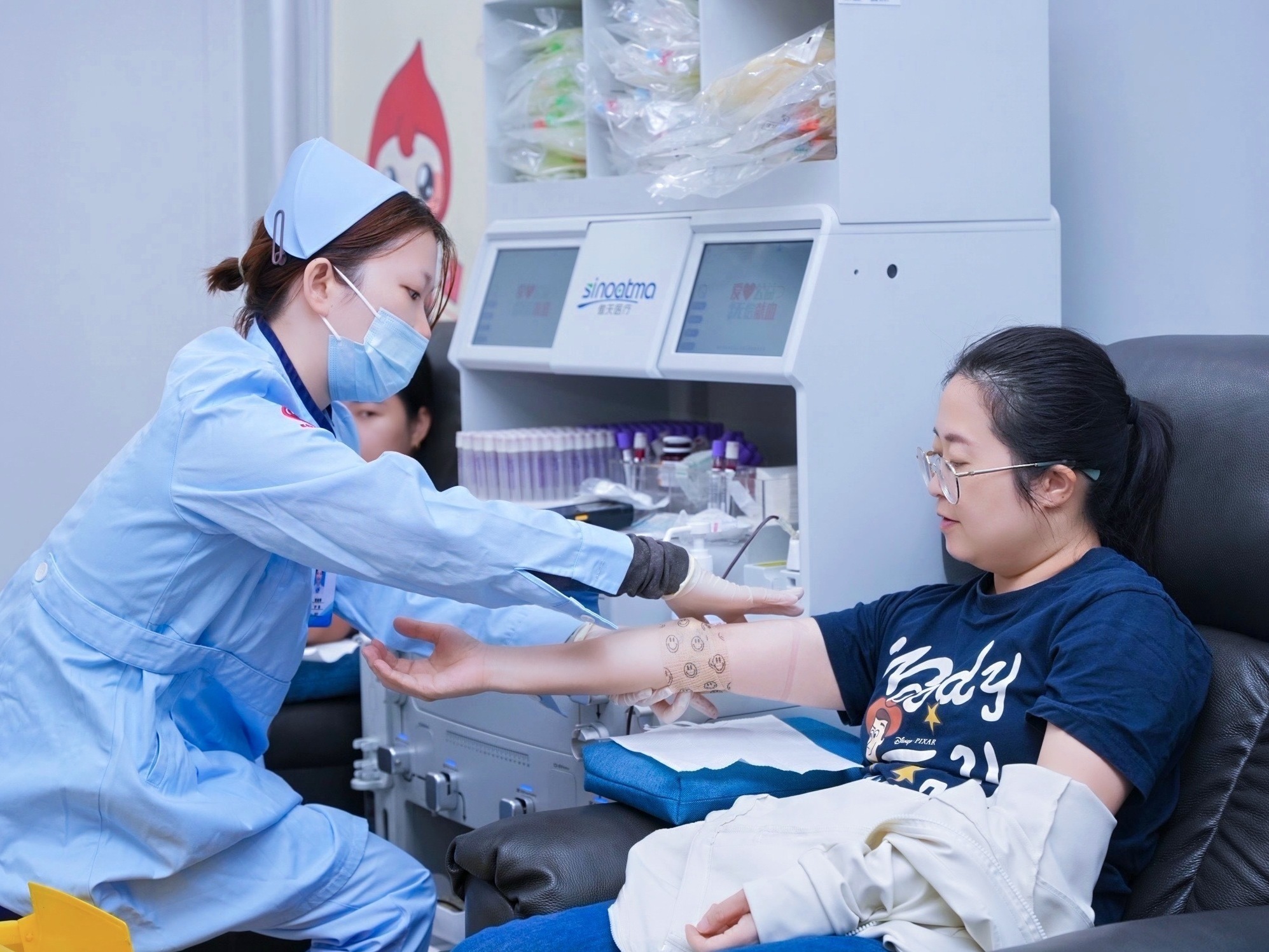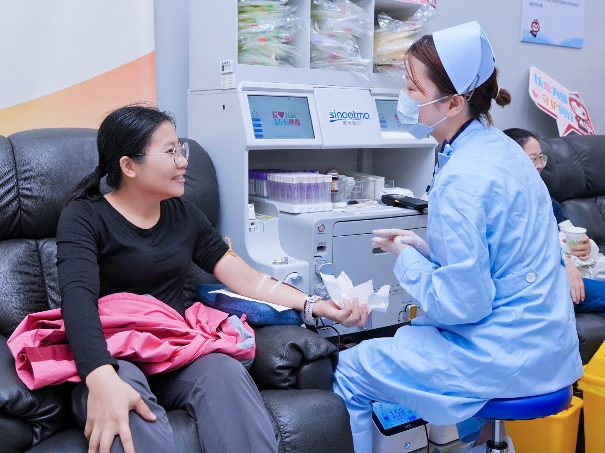 广西医科大学附属肿瘤医院头颈放疗二病区副主任医师韦静妮是捐血屋启用后的首位献血者