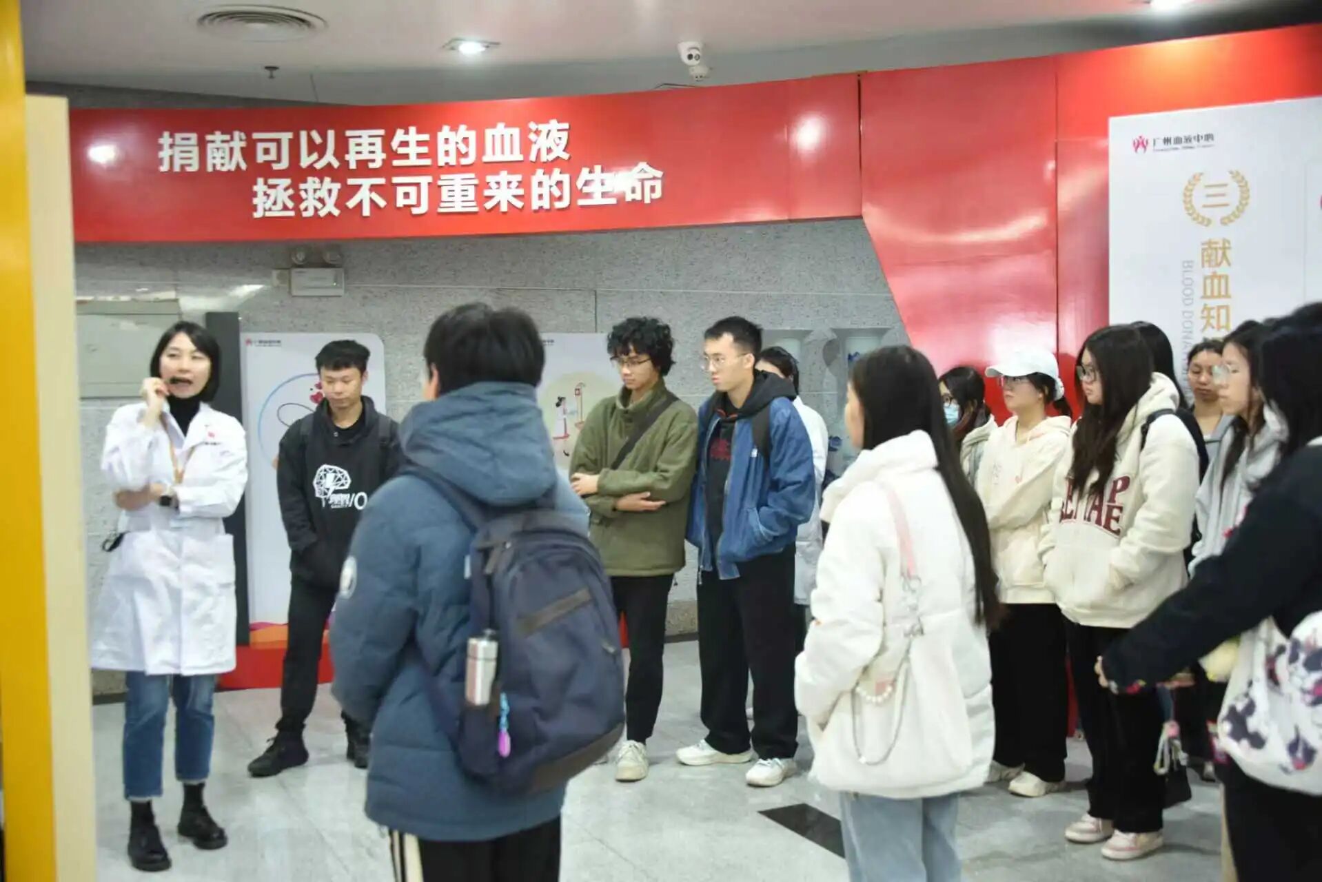 活动伊始,广州血液中心安排专业工作人员担任向导,按照“业务流程递进、知识重点突出”的原则,带领师生代表依次参观血源管理部、机采成分部、检验部、成分制备部、贮血发血部五大核心业务部门。在血源管理部,工作人员详细介绍了全血采集流程与献血者招募标准,让师生们直观了解无偿献血的前置准备工作。走进机采成分部,先进的血细胞分离设备吸引了众人目光,工作人员结合实操演示,讲解了血小板采集的技术原理与临床意义,解答了 “机采献血对身体是否有影响” 等疑问。检验部内,严谨的检测流程、专业的检测仪器令人印象深刻,检验部工作人员强调 “每一份血液都需经过多轮严格检测,充分确保用血安全。成分制备部中,血液如何被分离为红细胞、血浆等不同成分的过程清晰呈现,让师生们知晓 “一份献血能拯救多名患者” 的科学依据;贮血发血部的恒温冷藏库前,工作人员介绍了血液储存的温度要求与发血调配机制,凸显了血液管理的精细化与规范化。