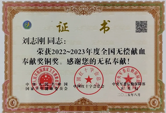 热血奉献,利人利己。刘志刚说,热血救人这种善举是中华民族助人为乐的优良传统,每次回咸阳探亲都会参加无偿献血做公益。健康的时候,无偿献血就是爱心储蓄。有时候,帮人就是帮自己,2019年,母亲不仅及时输血成功手术,康复出院时还为母亲报销了血费。