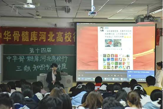 随后,保定市中心血站血液保障部部长芦春燕围绕无偿献血知识做了专题讲座,她详细介绍了无偿献血的重要意义、血液生理知识以及献血条件、流程和注意事项等内容,特别解读了河北省“三免政策”等优惠奖励措施。通过她的专业讲解,有效消除了同学们对献血过程的疑虑与担忧,为大家科学、安心地参与无偿献血提供了权威指导。
