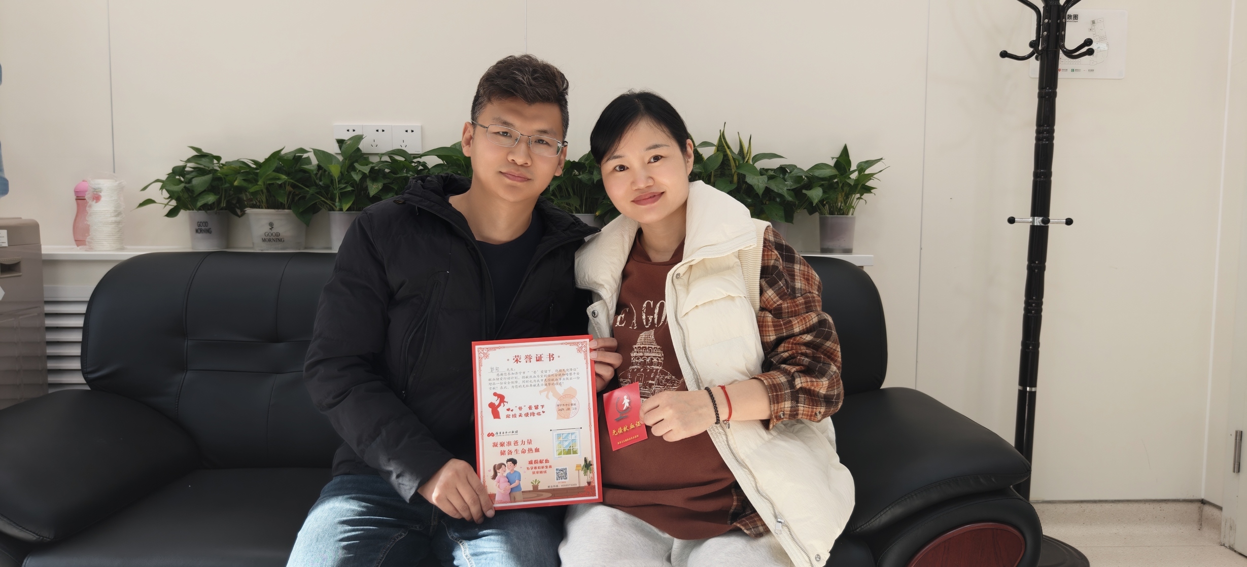 郭阳的献血行为,是这项计划落地的生动写照。他和妻子段女士都认为,献血不仅是为自己的家庭储备安全保障,更是用实际行动支持社会公益事业。献完血后,郭阳接过工作人员颁发的献血活动荣誉证书,上面的活动专属印章格外醒目。对于即将成为父亲的郭阳而言,这次献血比以往任何一次更是有特殊意义。“我希望当孩子来到这个世界的那一刻,背后有我曾经伸出手臂的勇气,有用热血写下的那句——‘宝贝,爸爸妈妈为你准备好了一切’。”