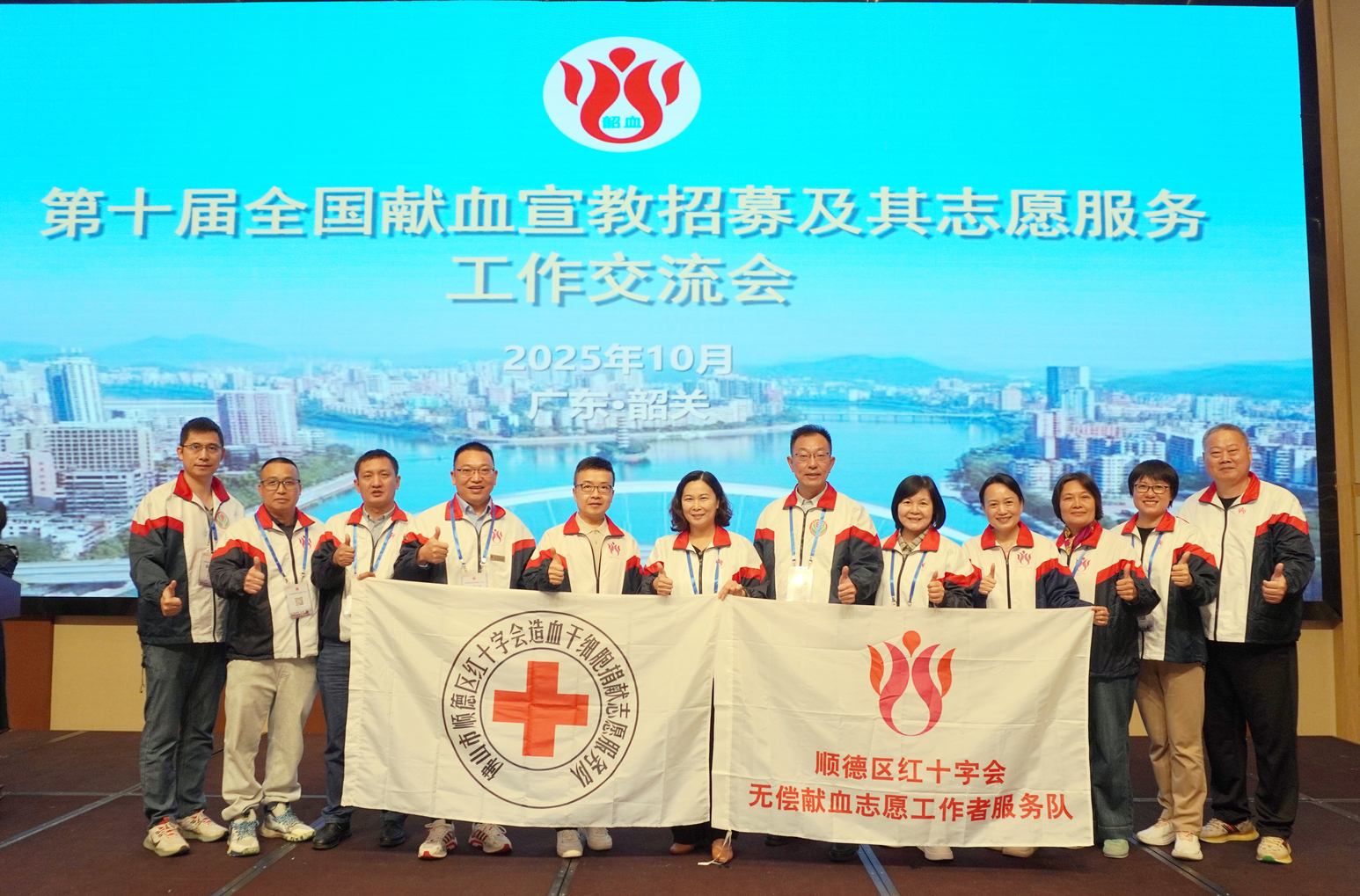 近日,全国献血宣教招募及志愿服务工作交流会在韶关盛大召开,顺德区红十字会无偿献血献髓志愿服务队(以下简称“服务队”)在广东省德胜基金会的大力支持下,派出12名骨干志愿者参与此次盛会。来自全国多个省、市的血液中心、血站负责人、工作人员、无偿献血志愿者代表共计160余人齐聚一堂,共同探讨无偿献血献髓事业的发展之路。
